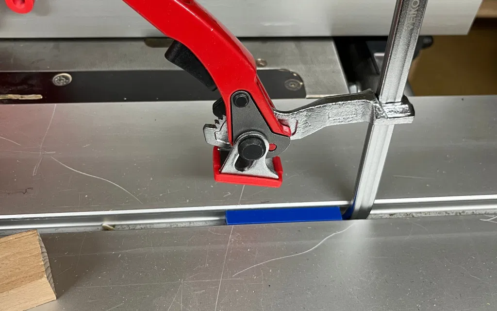 Adapter đai ốc cho kẹp một tay của Festool và các loại tương tự, dùng cho bàn trượt máy cưa Hammer K3, B3 hoặc C3. Có một con vít nhô ra trong rãnh, cần lắp adapter vào rãnh trước rồi mới lắp kẹp một tay.