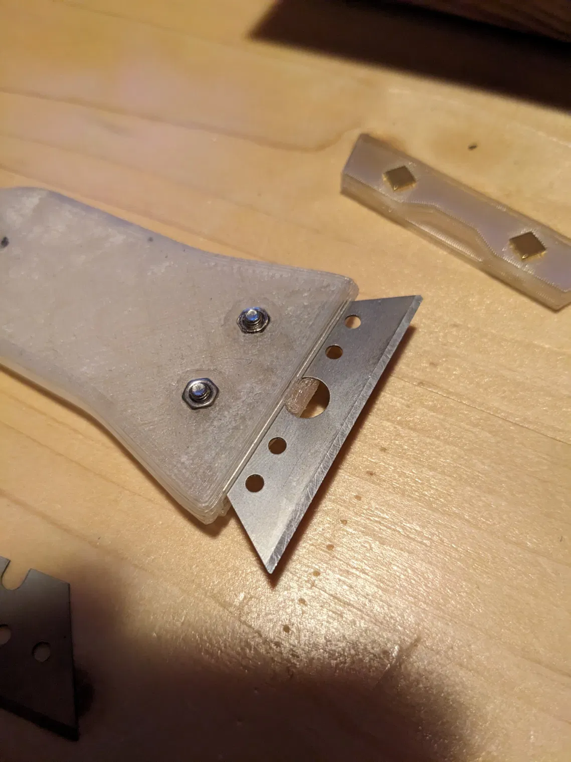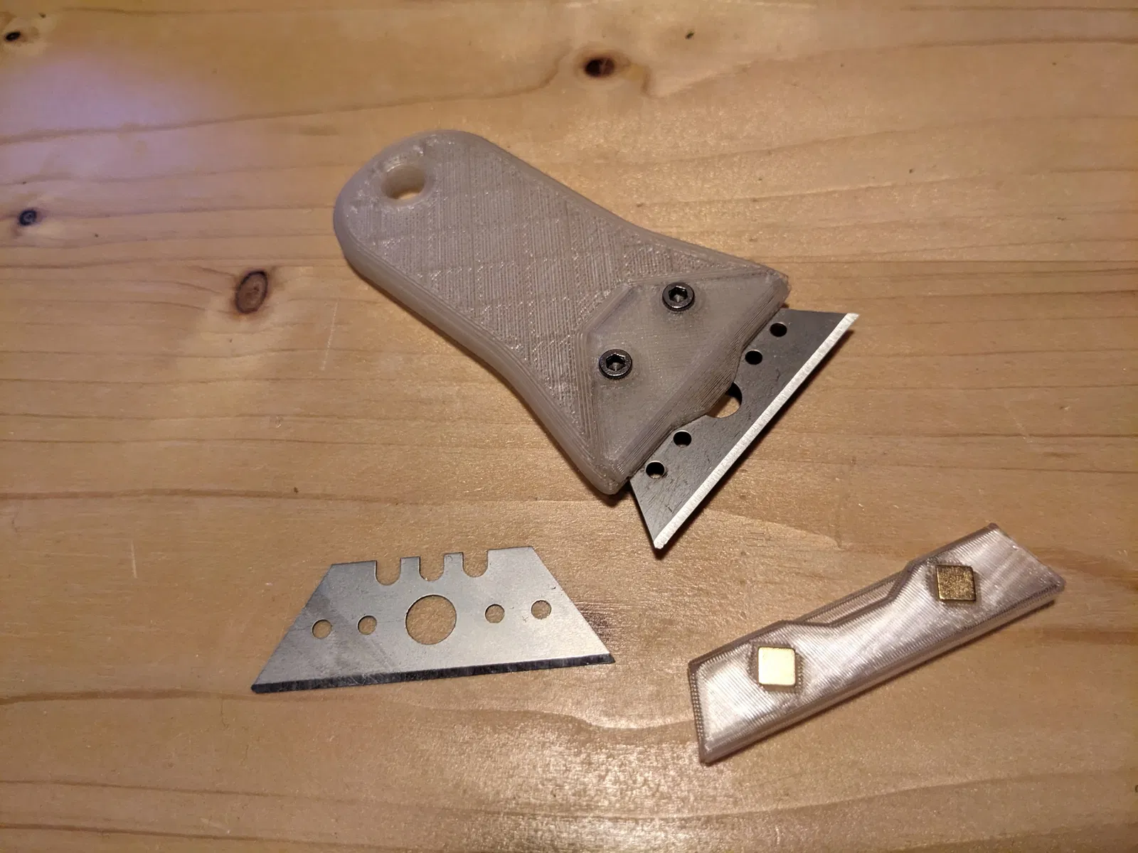 Mẫu này là bản chỉnh sửa cho lưỡi dao có ba khía ở trên, đồng thời thêm nắp bảo vệ lưỡi dao có nam châm. Kiểm tra bản vẽ để đảm bảo lưỡi dao của bạn tương thích.