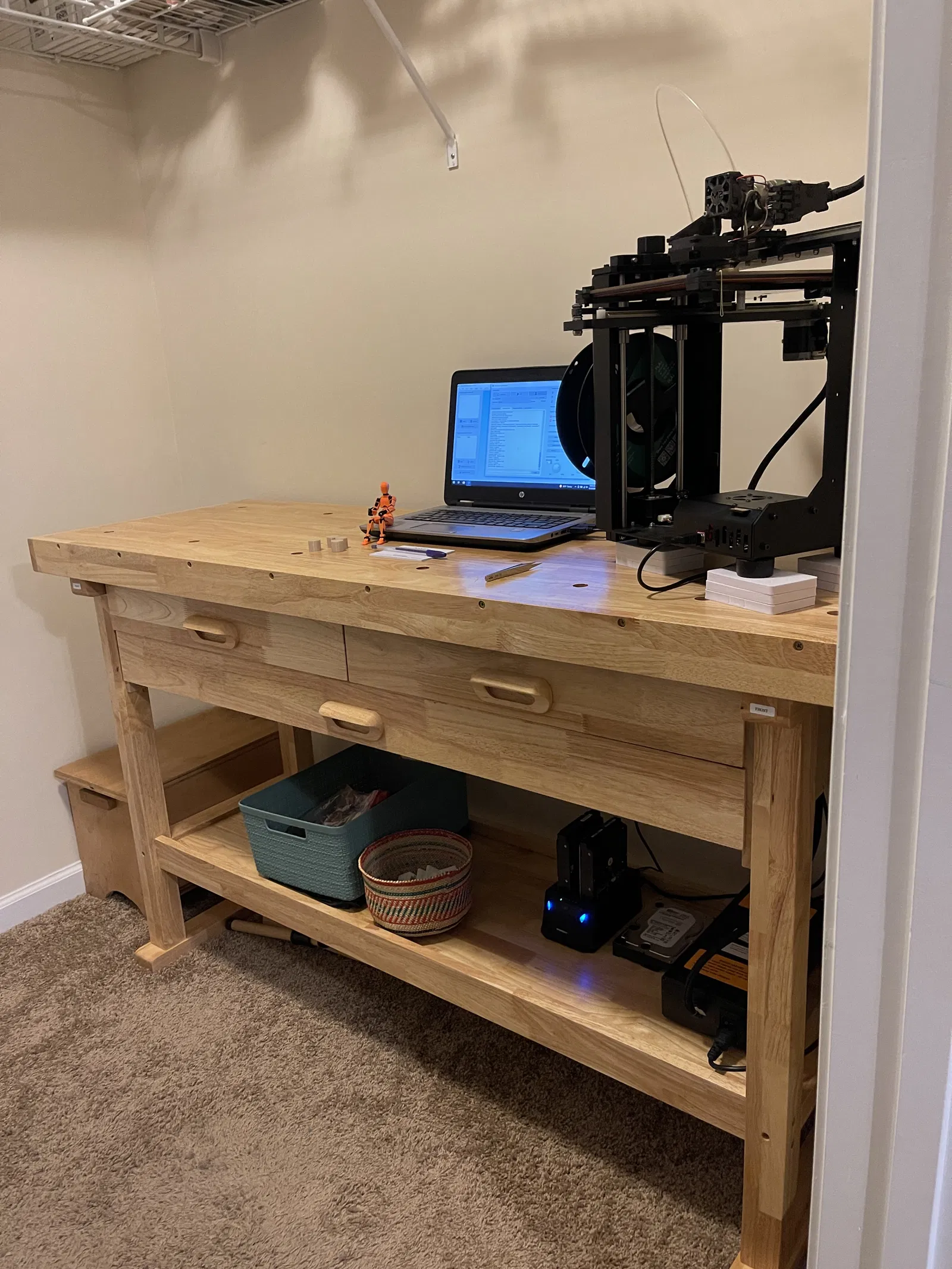 Tui mới mua cái bàn làm việc gỗ cứng Yukon 60in của Harbor Freight để xài với máy in 3D nè (đừng có để mấy cái mẫu bị trầy xước, xài nhiều ở cửa hàng làm bạn xao lãng nha – mấy cái ngăn kéo chạy mượt lắm và cái bàn thì cứng cáp lắm đó).