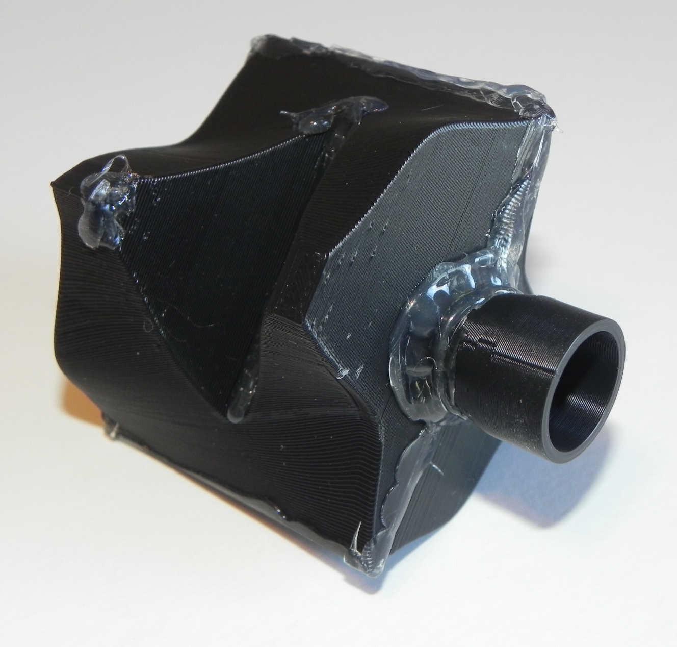Đây là bản chỉnh sửa từ "Hollow Helmholtz Sound Brick" của JoePKrcma. Video youtube của anh ấy có ghi "Đây là file miễn phí nếu bạn muốn tải về và in trên máy tại nhà (chúc may mắn với các phần bị nhô ra và hỗ trợ):" Mô hình trên thingiverse "Chúc bạn vui vẻ khi in thử cơn ác mộng này!" Nghe như một thử thách. Bên ngoài không có cạnh phẳng và trừ khi hình nón thẳng đứng, còn có phần hình trụ bị nhô ra cần xử lý.