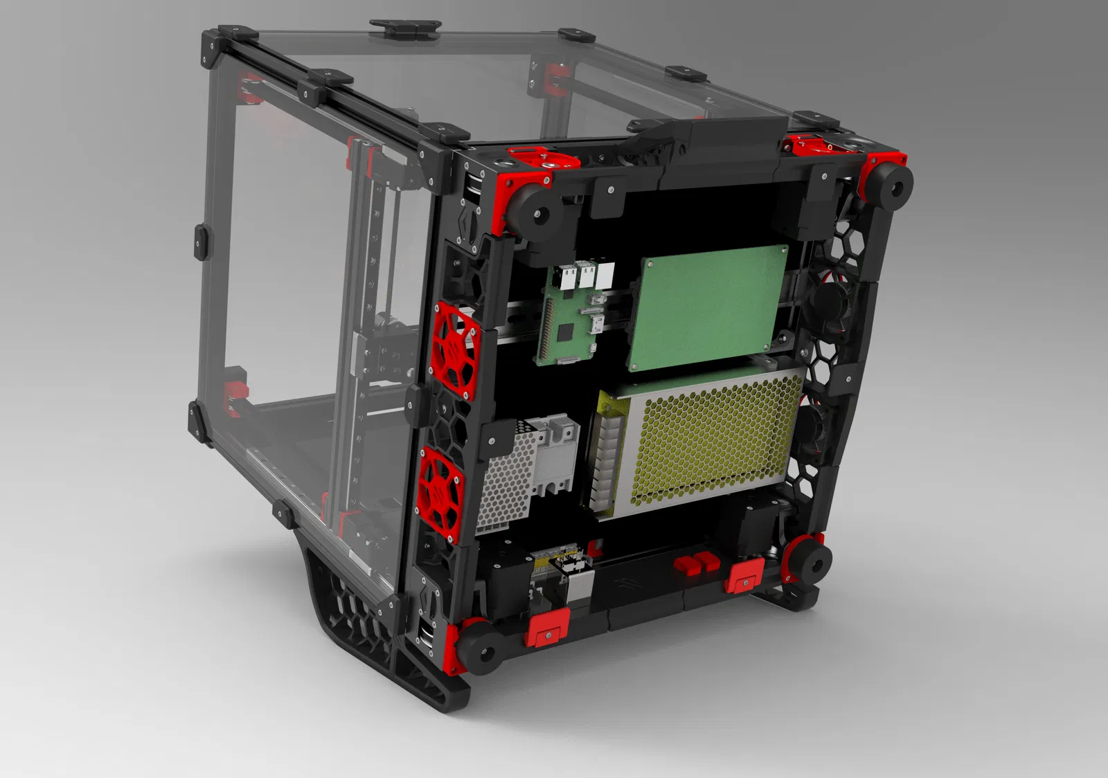 Phiên bản remixed từ mẫu RockNRoll, được làm liền khối, cứng cáp hơn với ruột tổ ong và bộ phận hỗ trợ tích hợp. Dùng để nâng Voron, giúp bạn dễ dàng tiếp cận khoang điện tử bên dưới, thay thế các kẹp panel cũ.