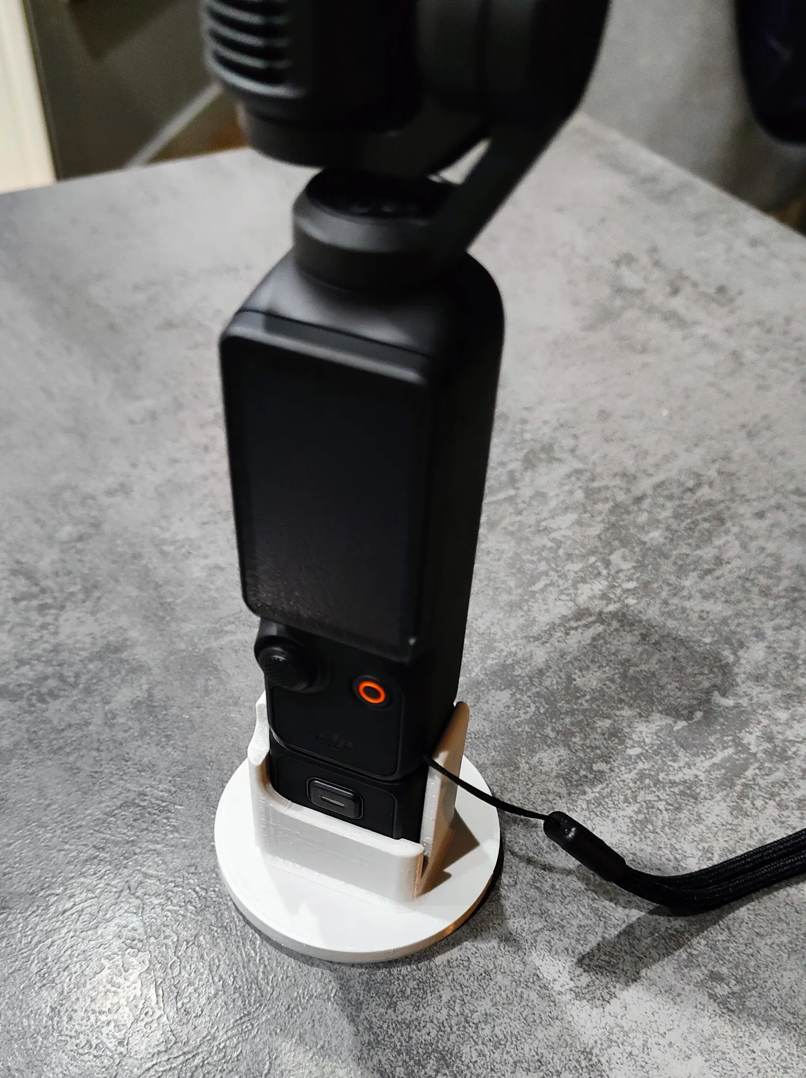 Phiên bản chỉnh sửa của chân đế để bàn, nay có đế tròn, rãnh xỏ dây đeo, vừa sạc/usb, chiếm ít diện tích và đứng vững, phù hợp cho DJI Osmo Pocket 3.