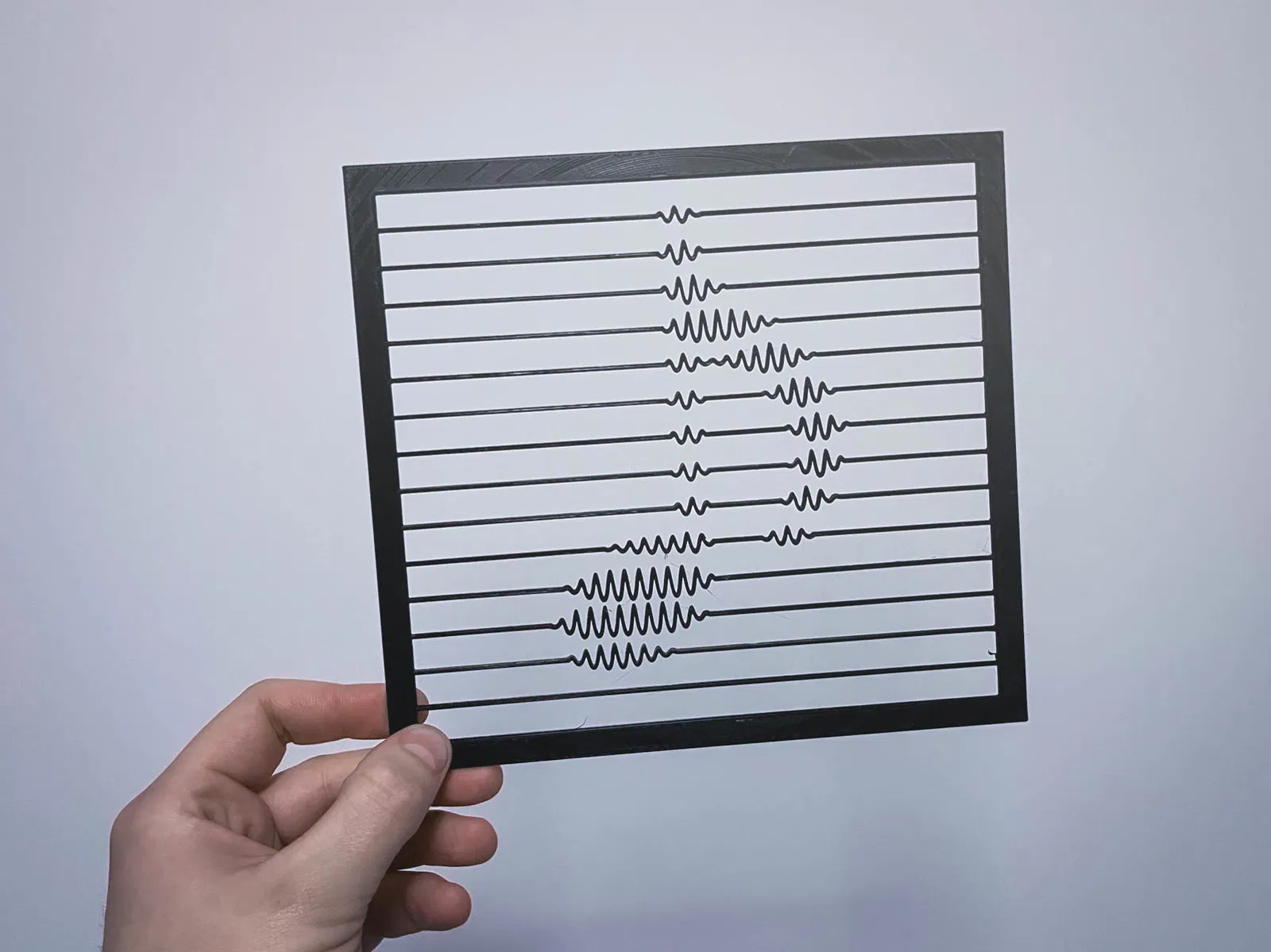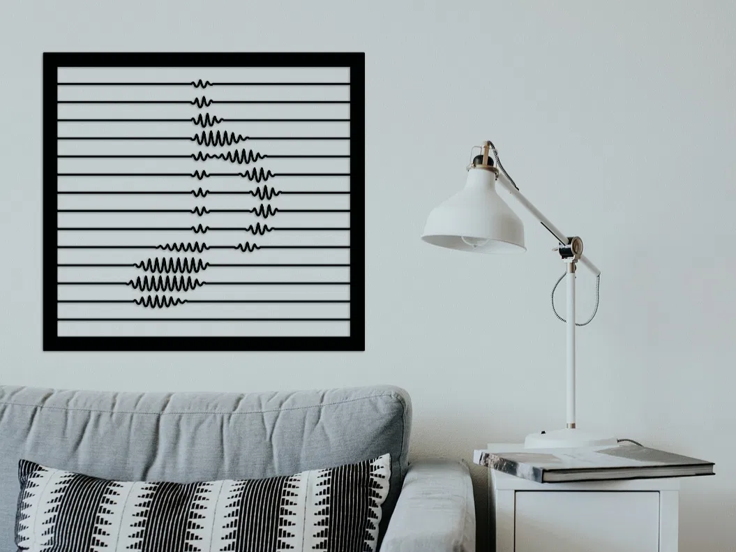 Tranh treo tường hình nốt nhạc, được tạo hình theo dạng sóng âm thanh. Đây là sản phẩm đầu tiên trong series tranh tự code độc đáo, có thể tùy chỉnh kích thước.