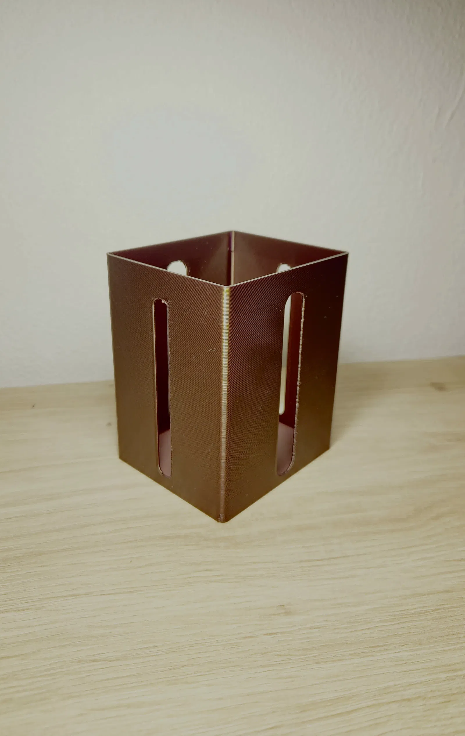Mô hình thùng rác đơn giản với kích thước 80 x 70 x 100 mm. Thích hợp để đựng các vật dụng nhỏ, có thể dùng để chứa gói hút ẩm hoặc rác thải văn phòng.