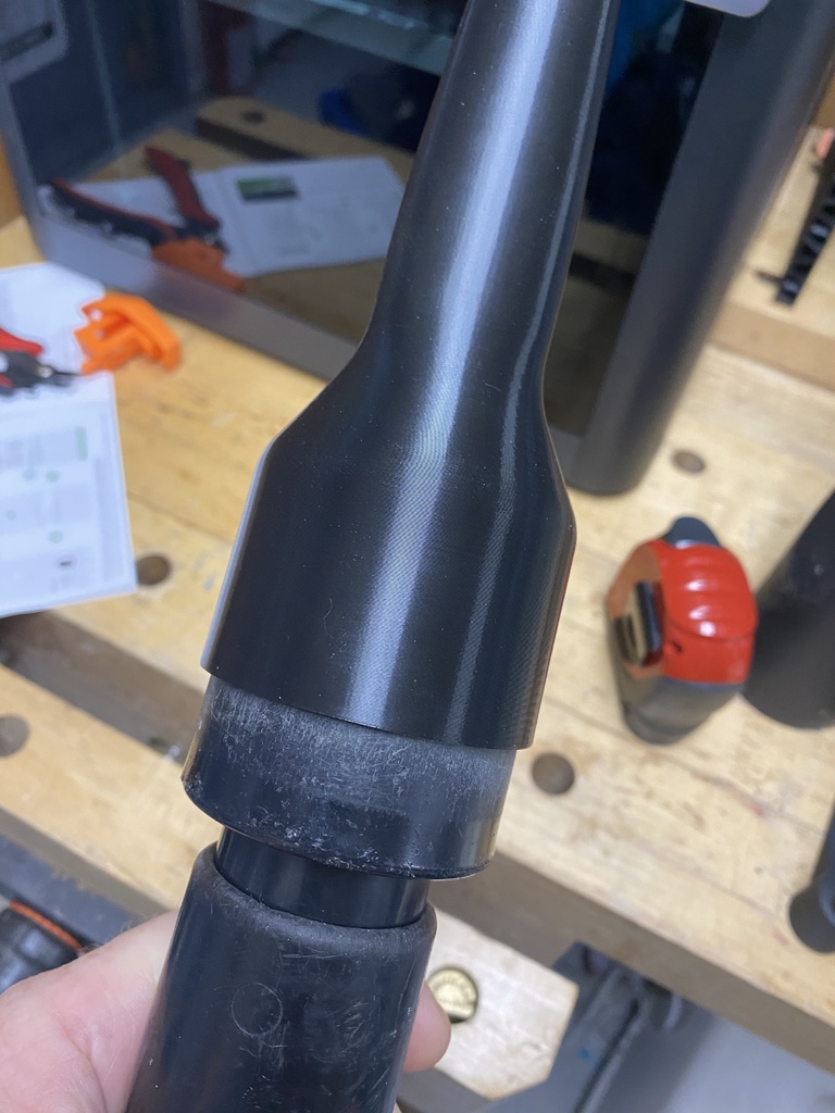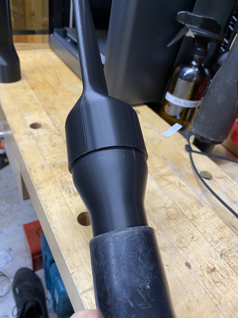 Tui cần một cái đầu hút có đầu nhỏ hơn cho cái máy hút bụi Shop Vac của tui nên tui đã thiết kế cái này bằng OnShape như một bài tập học hỏi. Cuối cùng tui làm ra một lô với nhiều kích cỡ và chiều dài khác nhau. Tất cả chúng đều nên vừa với một cái khớp nối tiêu chuẩn có đường kính ngoài khoảng 60mm. Tui đã thêm một cái khớp nối để dùng với ống nhỏ hơn. Tui khuyên bạn nên in gần như đặc ruột để có độ bền. Tui đã dùng 4 lớp tường bằng PLA và đến giờ nó vẫn ổn. Có một vài vấn đề về độ bám dính nên tui đã thêm viền bên trong và bên ngoài, tăng nhiệt độ lớp đầu tiên và bàn nhiệt lên 5 độ và mọi thứ đều ổn.