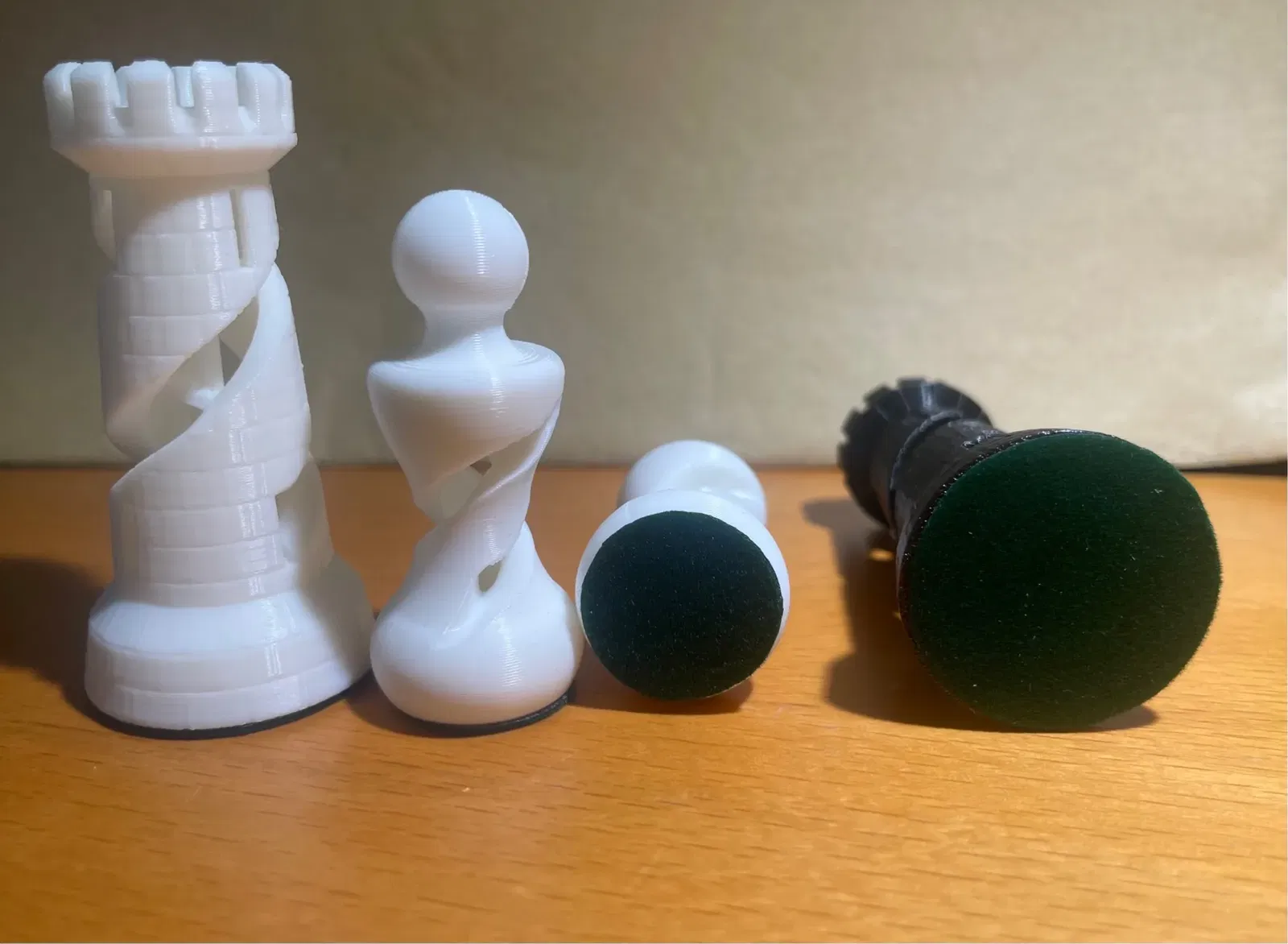 Tôi rất thích các quân cờ Organic, và để làm cho chúng đẹp hơn khi chơi và mang lại cảm giác chuyên nghiệp hơn, tôi muốn thêm vải nỉ màu xanh vào mỗi quân cờ.
