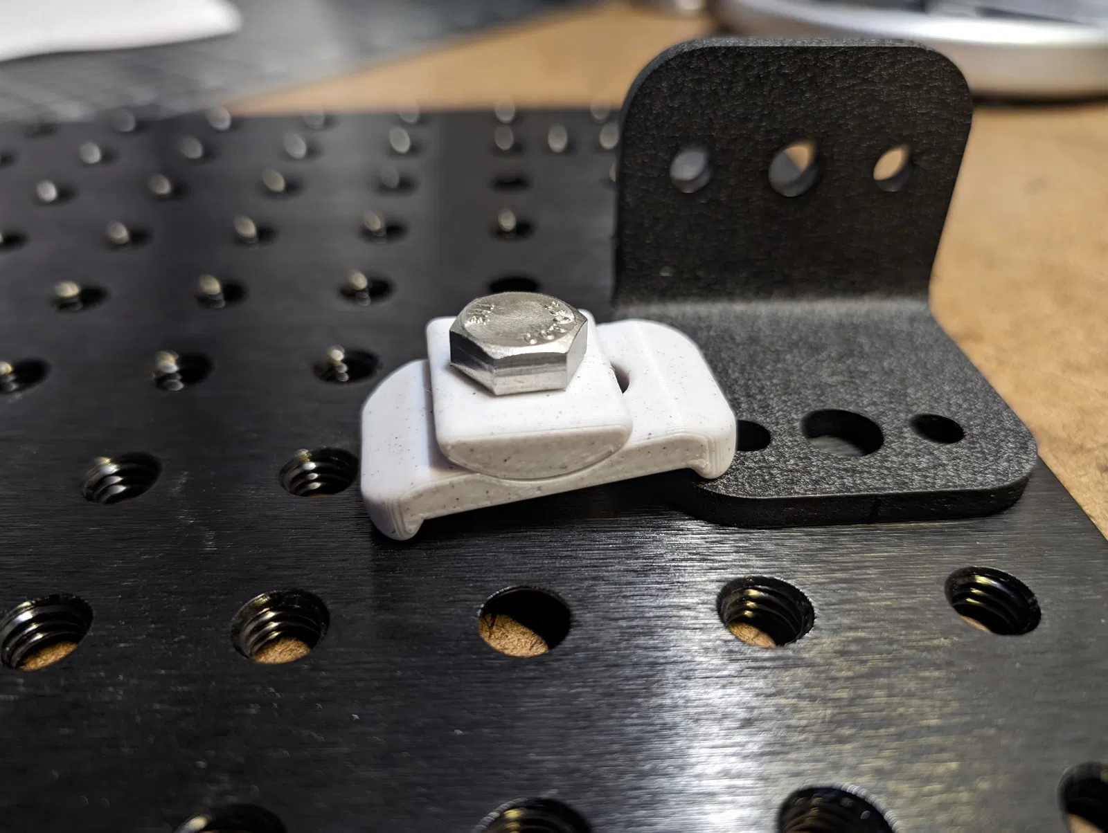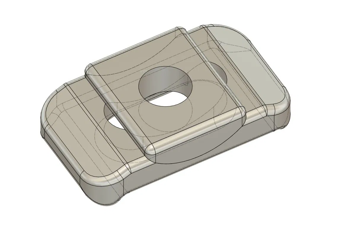 Kẹp giữ đơn giản cho các chi tiết mỏng hoặc có cấu hình thấp. Vừa với bu lông 3/8, có file Fusion 360 để tùy chỉnh. In bằng PLA và ASA, phù hợp cho xưởng cơ khí.