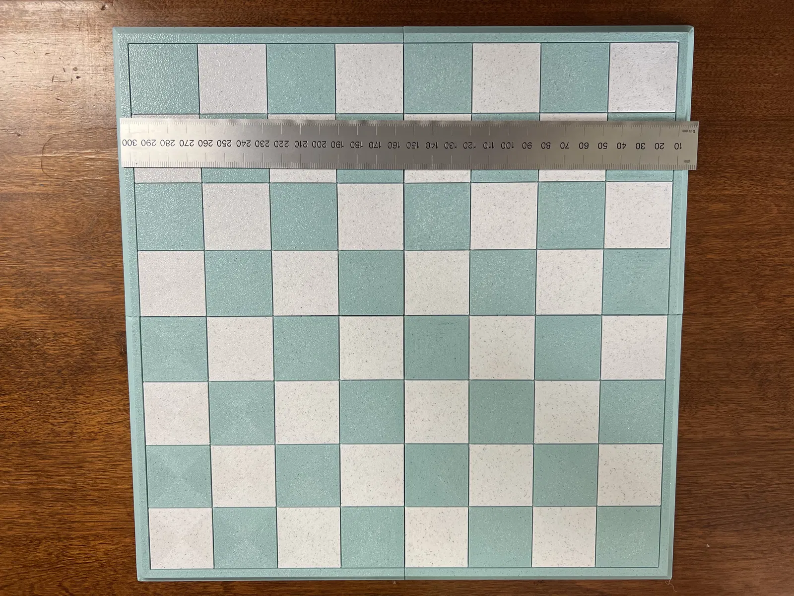 Một bàn cờ 4 mảnh, 2 màu, có thể ghép lại với nhau bằng các miếng "bowtie". Kích thước ô 36mm. Tác giả muốn một bàn cờ đơn giản, 2 màu, in được bằng AMS và khớp chặt với nhau.