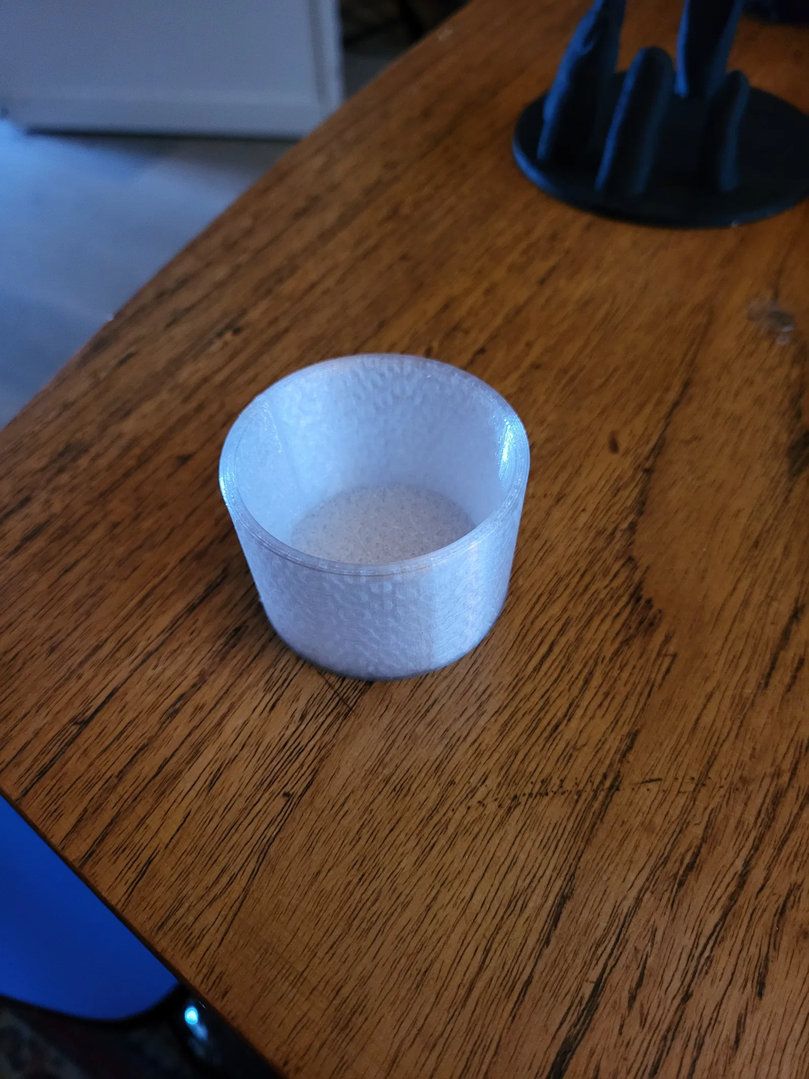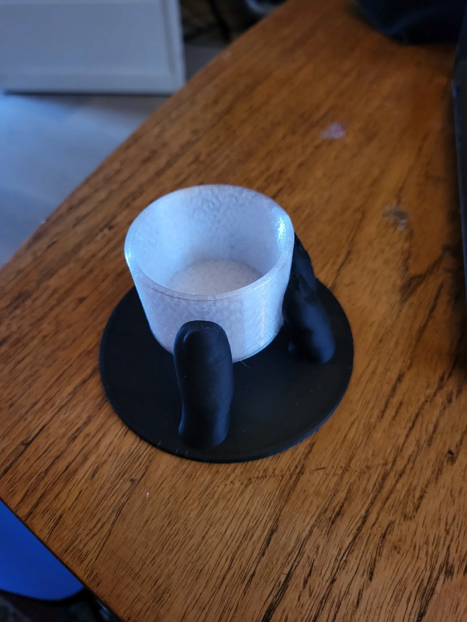 Đây là một mô hình tôi đã thực hiện cho một cuộc thi nhỏ, nhiệm vụ là làm cho một người giữ nến tealight. Tôi đã nhận nhiệm vụ một chút quá nghĩa đen và làm một phần của một bàn tay đang cầm ngọn nến. Trong mô hình ban đầu, tôi đã sử dụng một cốc thủy tinh để giữ nến, nhưng tôi cũng làm một chiếc cốc bằng PETG trong suốt có cùng kích thước. Tùy thuộc vào độ trong của cốc, sự khuếch tán của ánh sáng sẽ khác nhau (tôi đã sử dụng một mẫu gyroid).