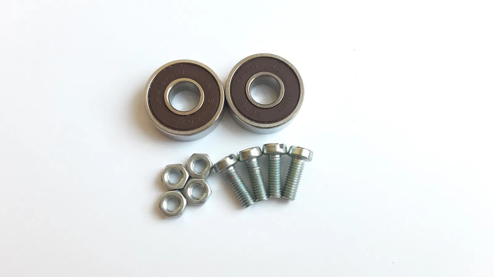 Đế giữ được gắn bằng 4 bu lông M3,5x8 (hoặc M3x8 nếu bạn tải phiên bản M3) và 4 đai ốc ở mặt kia. Vòng bi có đường kính ngoài 19mm, đường kính trong 7mm và chiều rộng 6mm.