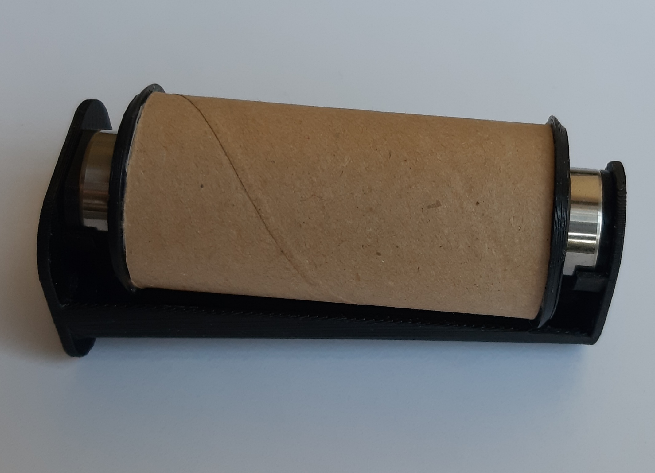 Cái đế giữ cuộn dây này được thiết kế cho cuộn dây 1kg, chiều rộng tối đa 65mm. Có 2 phiên bản con lăn: một phiên bản hoàn toàn in 3D và phiên bản thứ hai làm bằng ống có đường kính trong 30mm, trong trường hợp của mình thì ống làm bằng giấy.