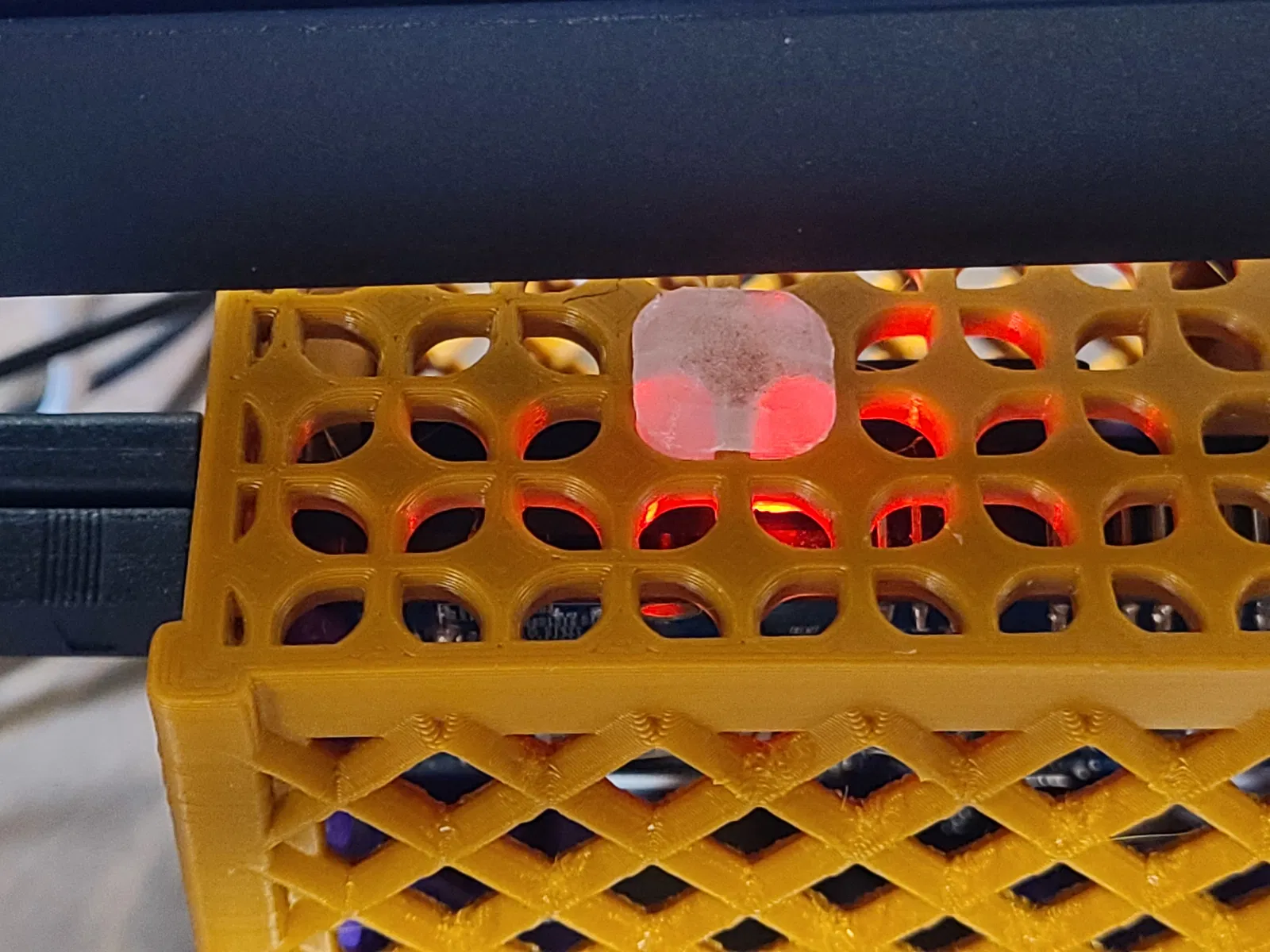 Cập nhật - Tôi có một chiếc OPi5 thứ hai và đã in mẫu case này, nhưng lần này là bằng nhựa ABS màu vàng và tím. Nó in rất đẹp và trông rất ngầu, vì vậy tôi đã thêm ảnh của nó. Màu sắc phong phú bổ sung cho chủ đề art deco. Thật không may, nhựa ABS làm cho việc nhìn thấy đèn LED trở nên khó khăn. Vì vậy, tôi đã thêm một bộ dẫn sáng thô mà tôi đã in bằng PETG trong suốt, sử dụng cài đặt để làm cho nó trong. Điều này bao gồm việc in ở nhiệt độ cao và không quạt để ngăn phần trên chỉ là một cục nhựa xấu xí, tôi đã in hai bộ dẫn sáng cách nhau một khoảng. Bộ dẫn sáng chỉ cần ép vào phần nắp.
