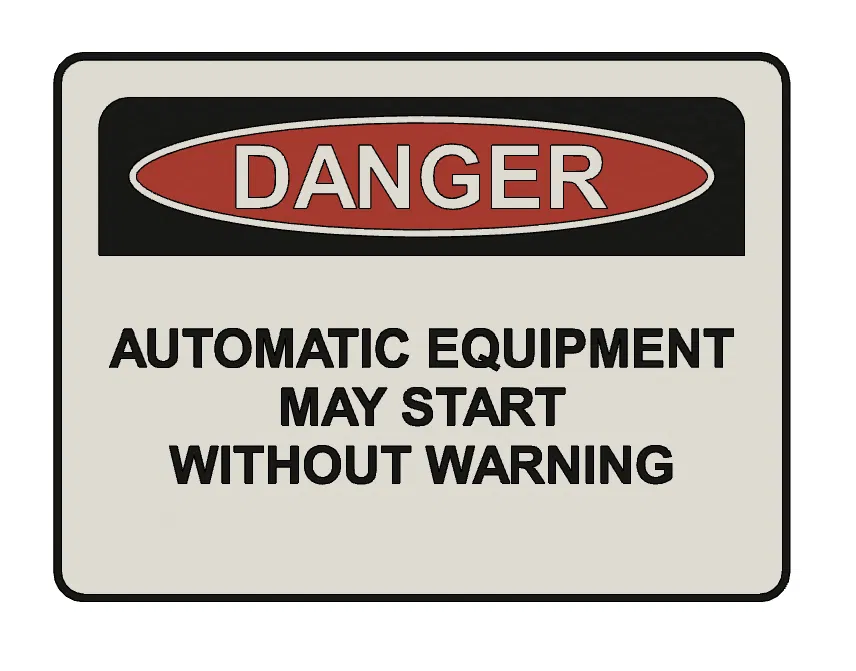 Đây chỉ là một biển báo đơn giản, dùng để cảnh báo nguy cơ thiết bị có thể tự động khởi động bất ngờ. Sản phẩm này phù hợp để bạn in ra và đặt ở những khu vực cần lưu ý về an toàn lao động.