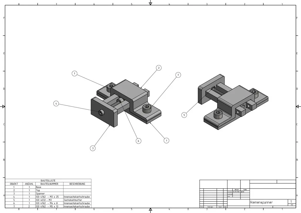 Verbesserter Riemenspanner für die Y-Achse des Anet AM8. Im vergleich zum Original (https://www.thingiverse.com/thing:2263216) besteht dieser aus drei Einzelteilen und lässt sich deshalb besser montieren. Die Spann-Schraube (M3x25) sitzt nicht mehr direkt auf dem Druck-Teil sondern im Kopf einer M4x8 Zylinderkopfschraube mit Innensechskant.