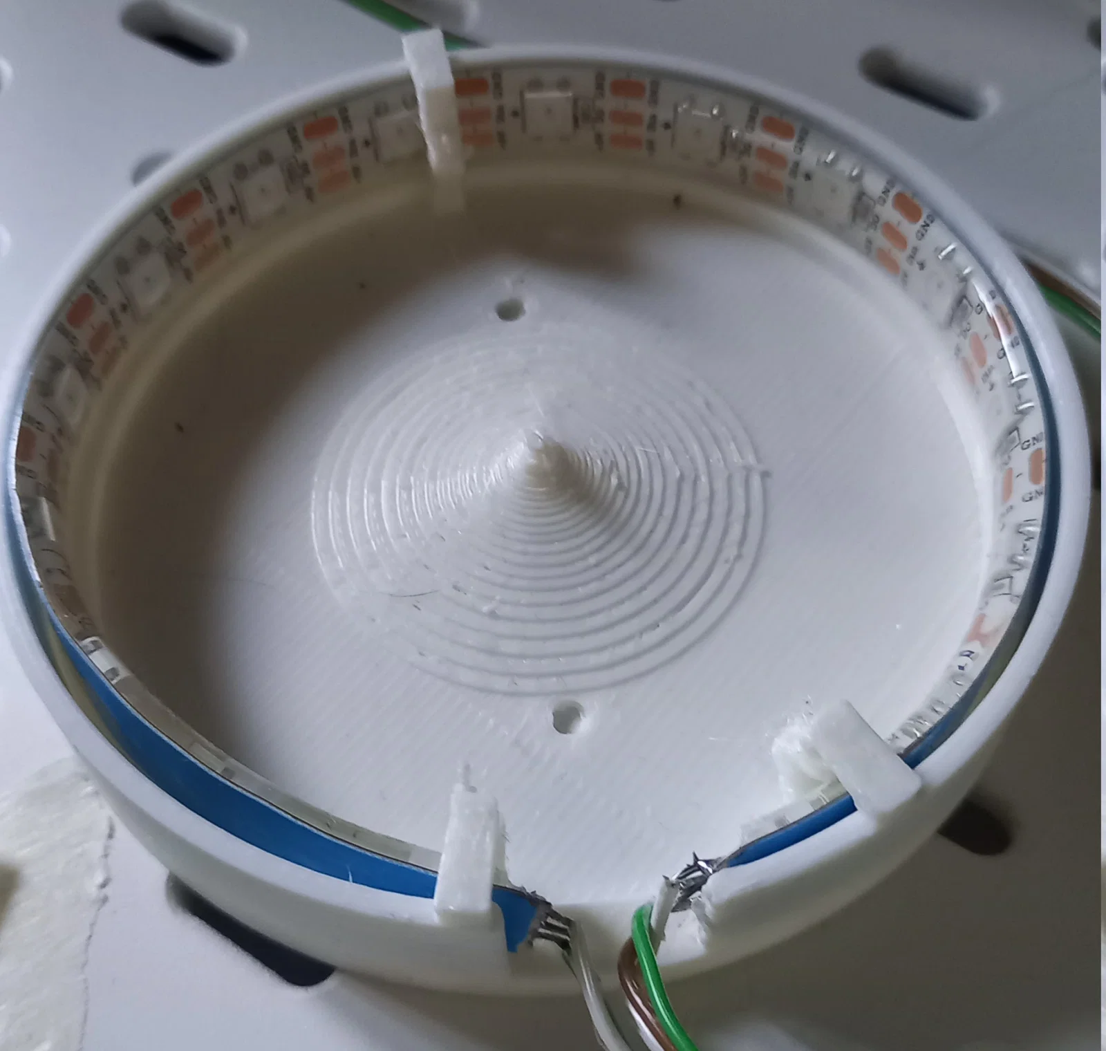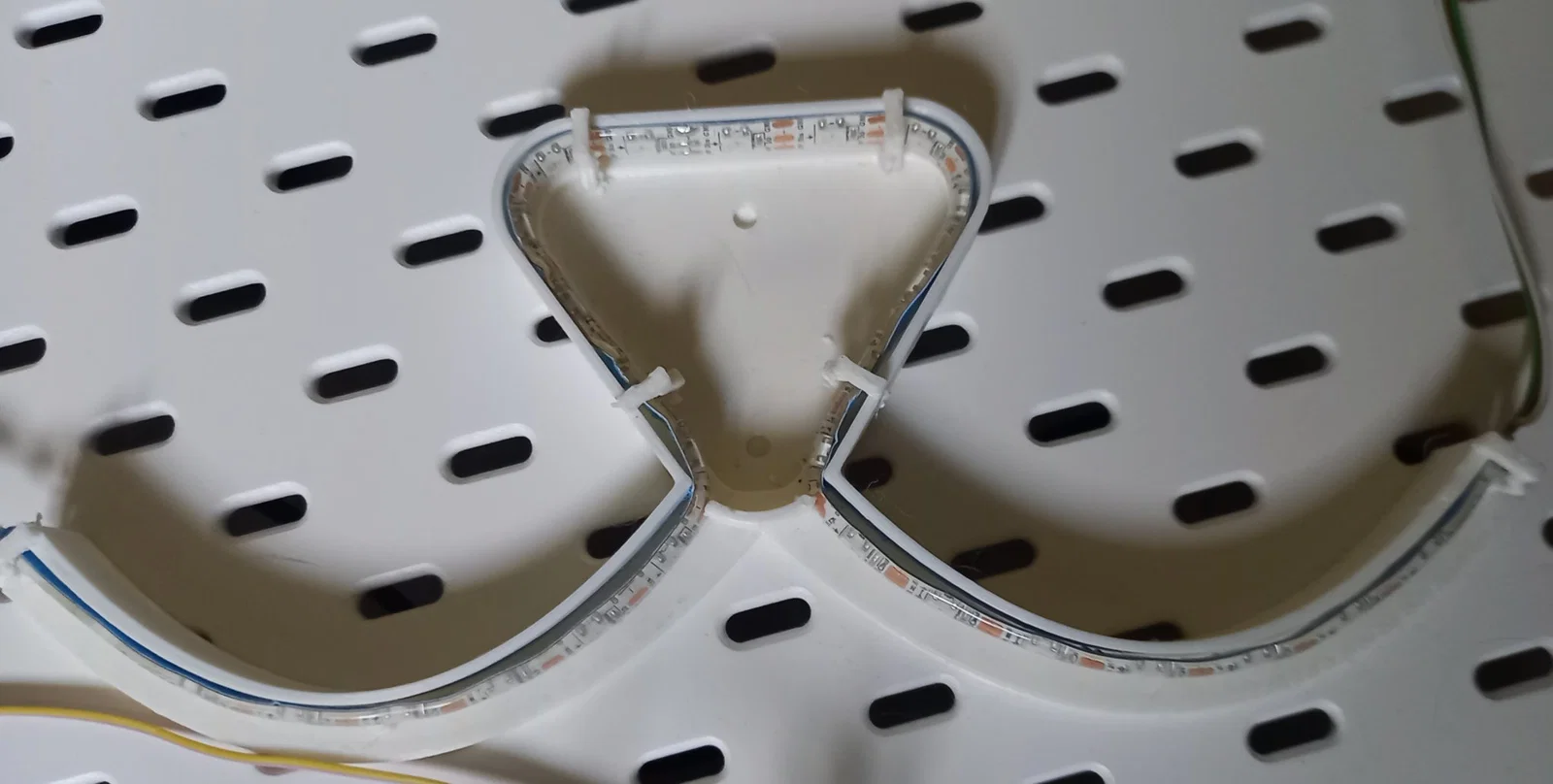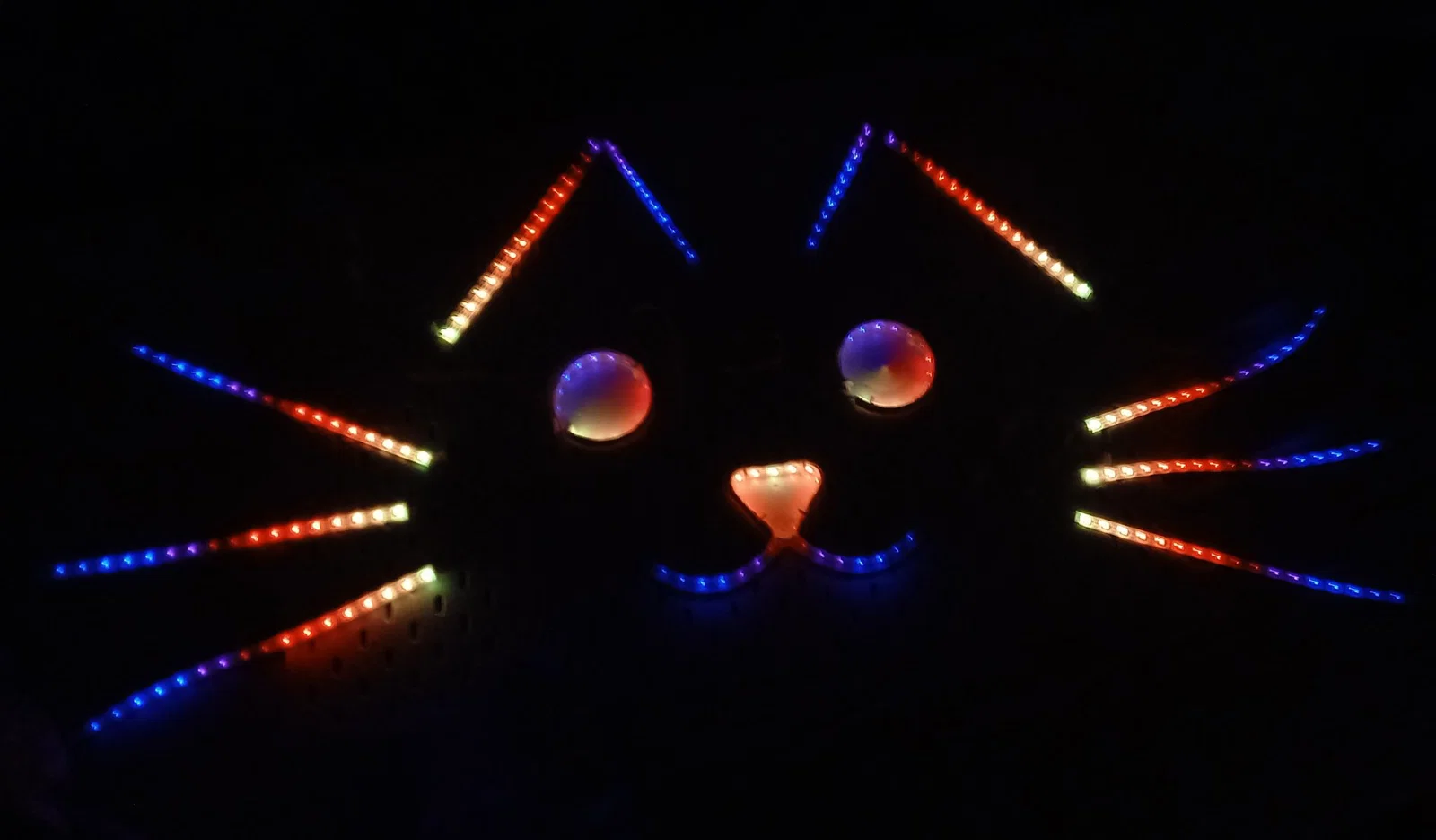 LED stripes có thể dễ dàng uốn lên và xuống nhưng không phải sang trái/phải. Để xây dựng các hình dạng tròn, có thể lắp đặt vuông góc trên các hình dạng in 3D. Đối với đầu mèo nhấp nháy này, cần hai mô hình 3D cho mắt và mũi/mồm.