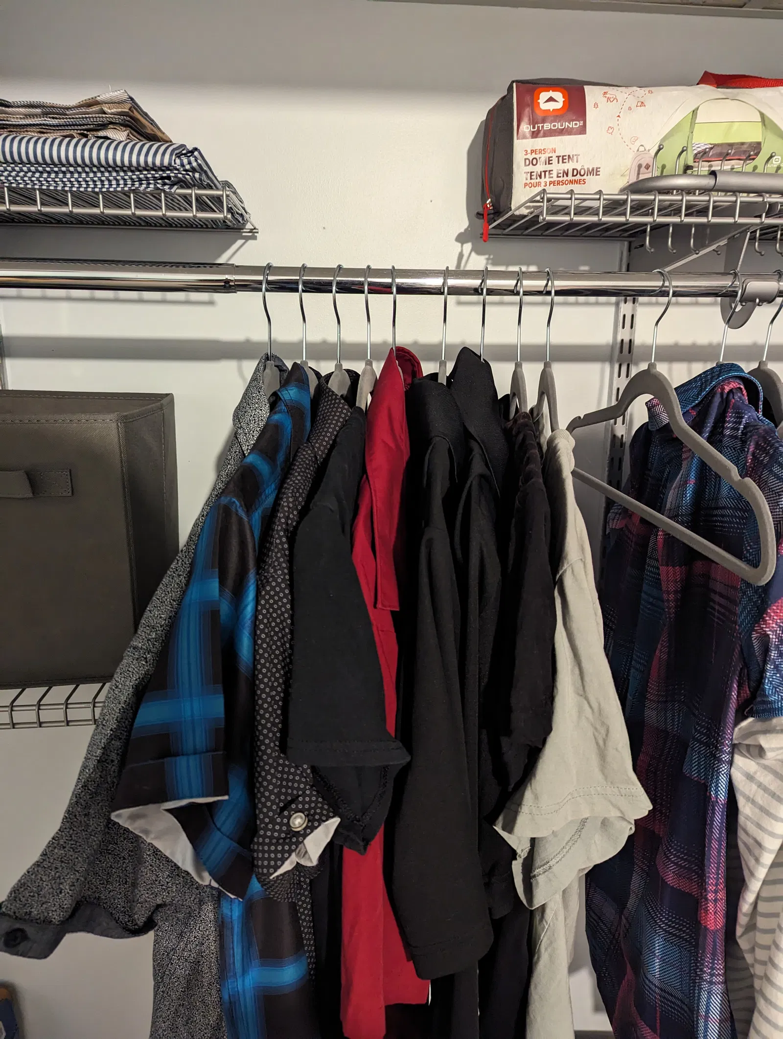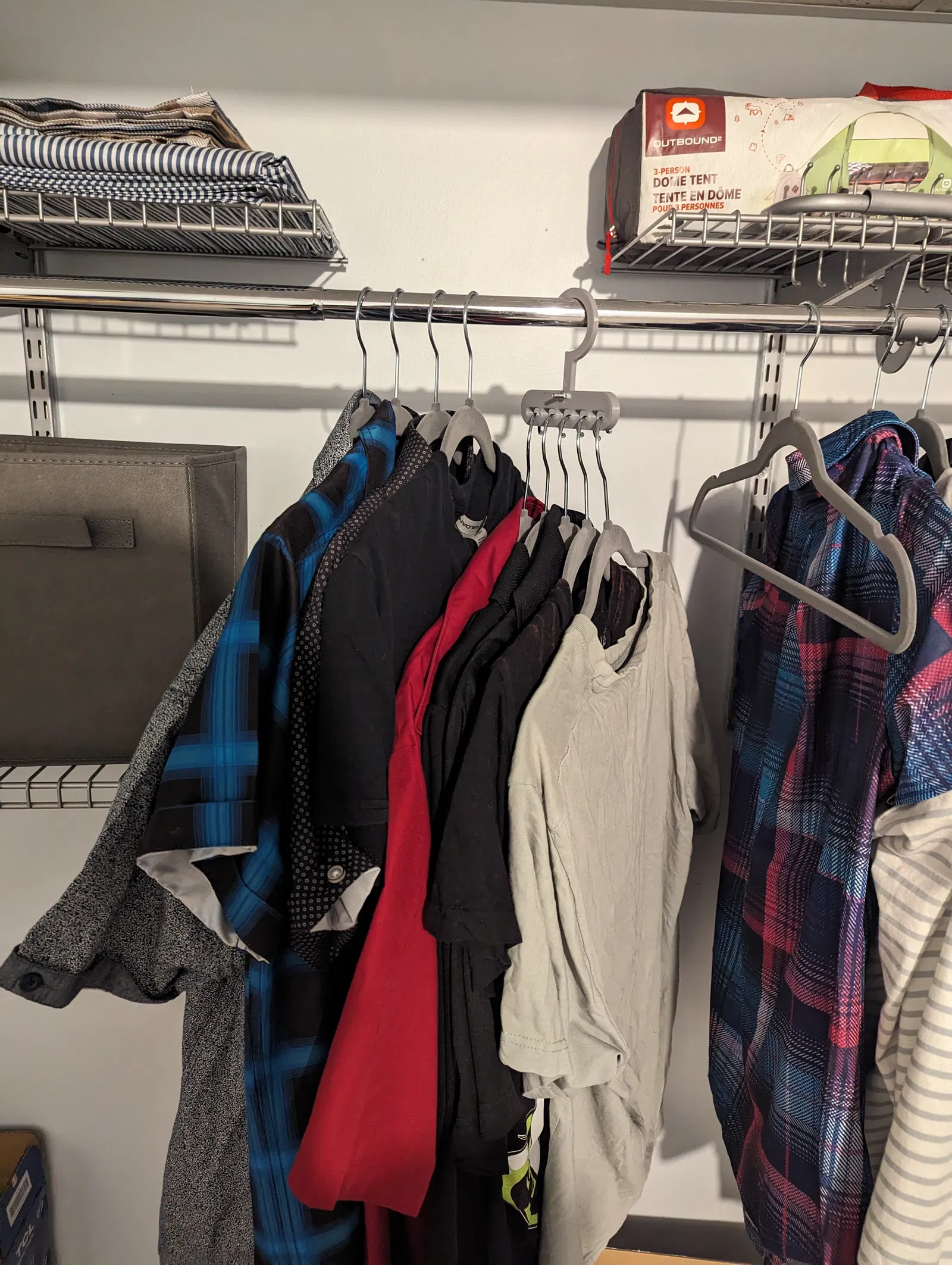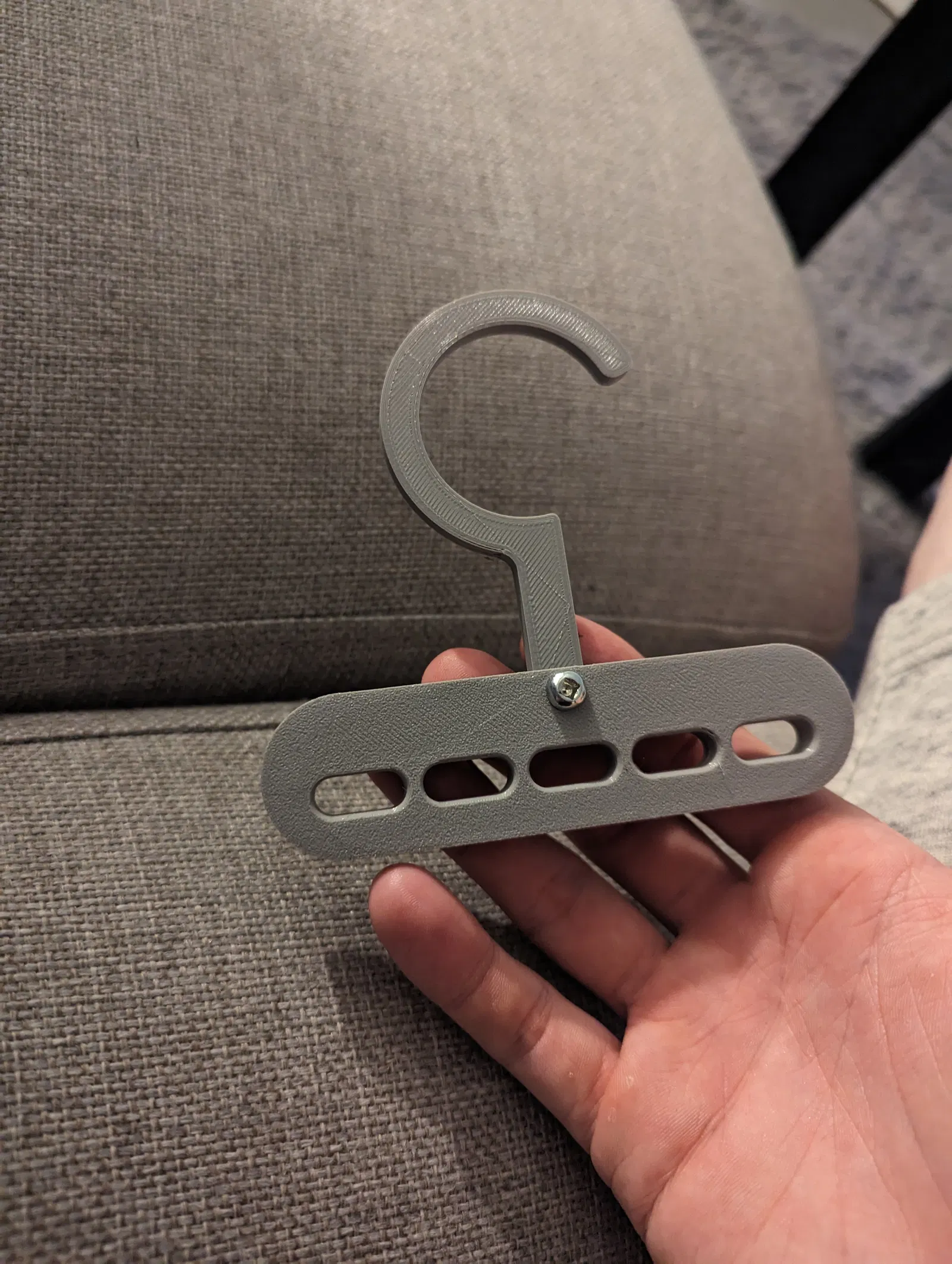 Dùng con ốc 4m để giữ 2 bộ phận lại với nhau. Tôi đang có kế hoạch làm một phiên bản có thể xoay được để treo mỗi cái thấp hơn, giúp tiết kiệm không gian trong tủ quần áo.