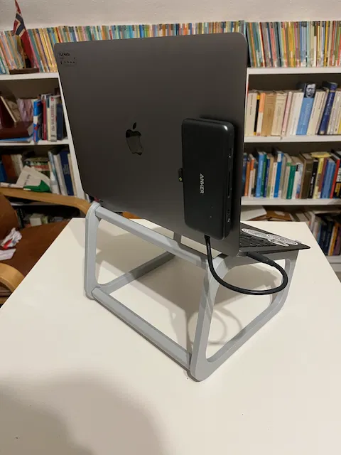 Thiết kế giá đỡ MacBook đơn giản, dễ dàng lắp ráp và in ấn. Có thể tùy chỉnh kích thước thanh nối và dung sai để phù hợp với nhu cầu. Phiên bản in dung sai 0.1mm đã có sẵn.