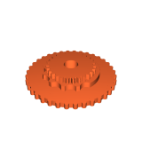 Đặt bánh răng trung tâm (middle moon gear) vào phần đế vỏ máy, mặt có bánh răng úp xuống, sau đó hướng chốt trên bánh răng trung tâm lệch 45 độ ra xa bánh xe xoay tay (thumbwheel). Tiếp theo, đặt bánh răng xoay tay (thumb_gear) vào, với số 0 ở vị trí số hàng chục. Sau đó thêm bánh răng Geneva với số 0 ở chính giữa. Nếu chốt trên bánh răng trung tâm được căn chỉnh, mọi thứ sẽ khớp vào nhau dễ dàng mà không cần dùng lực. Kiểm tra độ thẳng hàng của các con số để đảm bảo hàng chục quay vòng đúng như mong đợi, sau đó ép phần vỏ trên vào để giữ mọi thứ lại với nhau bằng khớp ép.