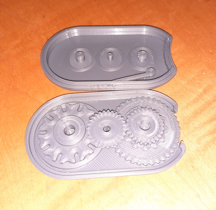 Phần đế của vỏ máy (case_bottom) cần có trụ chống. Không có bộ phận nào khác cần trụ chống. Hãy cẩn thận gỡ bỏ trụ chống ở phần đế vỏ máy trước khi lắp ráp. Nên in bánh răng Geneva ở độ cao lớp 0.12mm để hoạt động trơn tru hơn, vì các đường z-seam ảnh hưởng tiêu cực đến độ mượt của cơ cấu. Phần còn lại có thể in ở độ cao lớp 0.12mm hoặc 0.20mm.