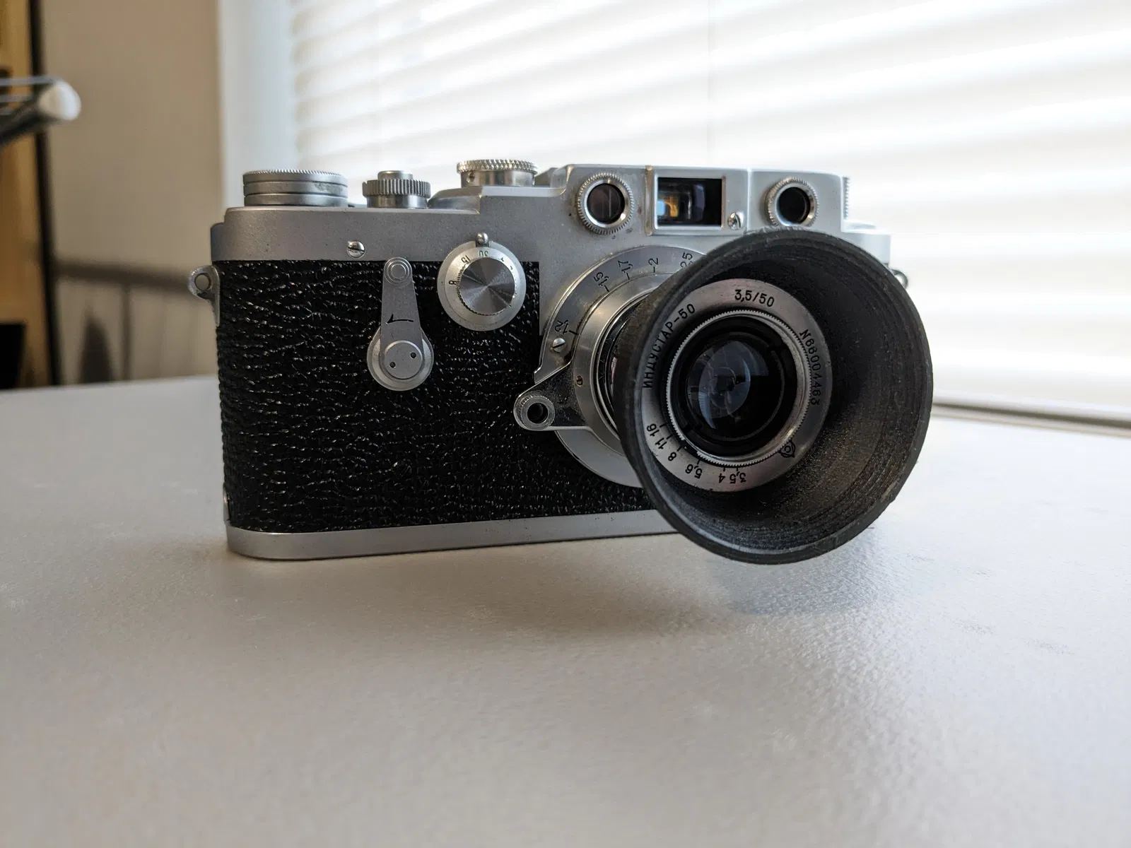 Chụp che sáng cho ống kính Industar-50, gắn vô cái vòng phía trước của ống kính. Không biết có vừa với ống kính của mấy ông không nha.