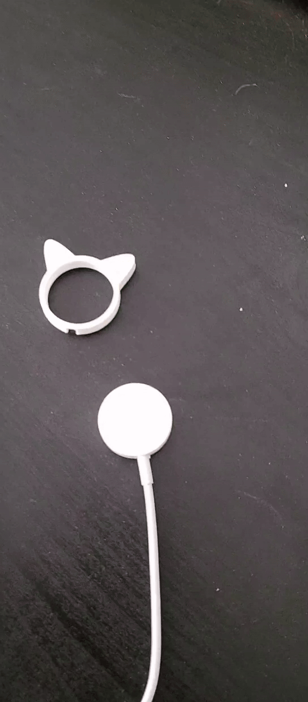 Tuppi trang trí cho cục sạc Apple Watch, làm từ nhựa PLA với định dạng STL. Kiểu dáng tai mèo dễ thương, chỉ dùng để làm đẹp, không ảnh hưởng chức năng sạc. Một món đồ không thể thiếu cho fan Apple Watch và mèo cưng.
