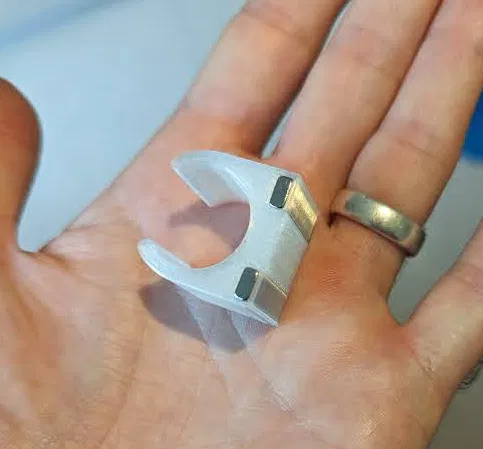 Để cho thanh hút ẩm nó lên tường thay vì để dưới sàn, tui làm ra cái mẫu đơn giản này, xài hai cục nam châm thanh loại 20 x 6 x 3 mm. Tui in bằng TPU mềm trong suốt để khỏi làm trầy cái thanh hút ẩm.