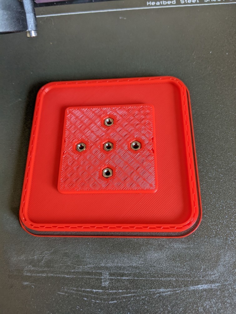 Tui có thêm một bộ lỗ gắn mặt trước nữa để có thêm lựa chọn khi thiết kế mặt trước. Các đai ốc m3 cũng được nhúng sẵn trong bản in. Dừng in ở độ cao 5.90mm và cho 5 đai ốc m3 vào các lỗ chứa, có kèm theo file gcode. Nếu bạn không thể hoặc không muốn làm vậy, bạn vẫn có thể gắn chúng từ phía sau, chỉ cần dùng ốc dài hơn thôi.