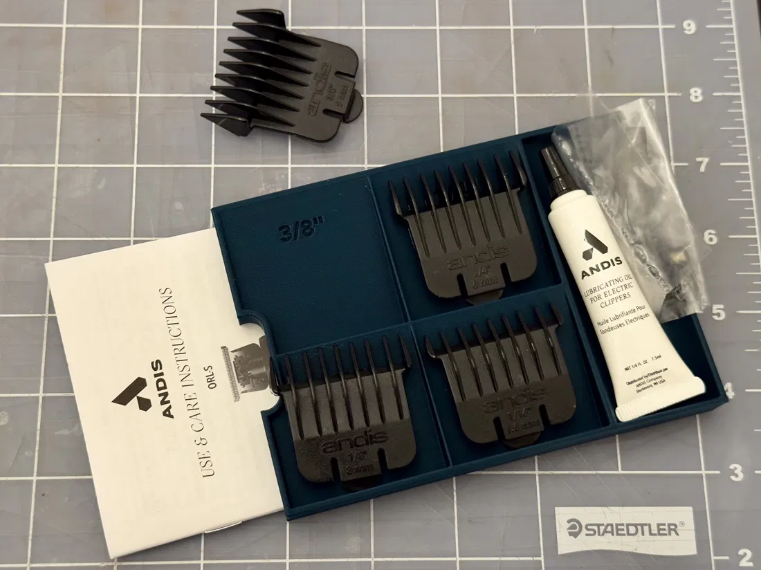 Khay được thiết kế để đựng các lược đi kèm, dầu, sách hướng dẫn và các phụ kiện khác của Tông đơ không dây Andis GTX-EXO.