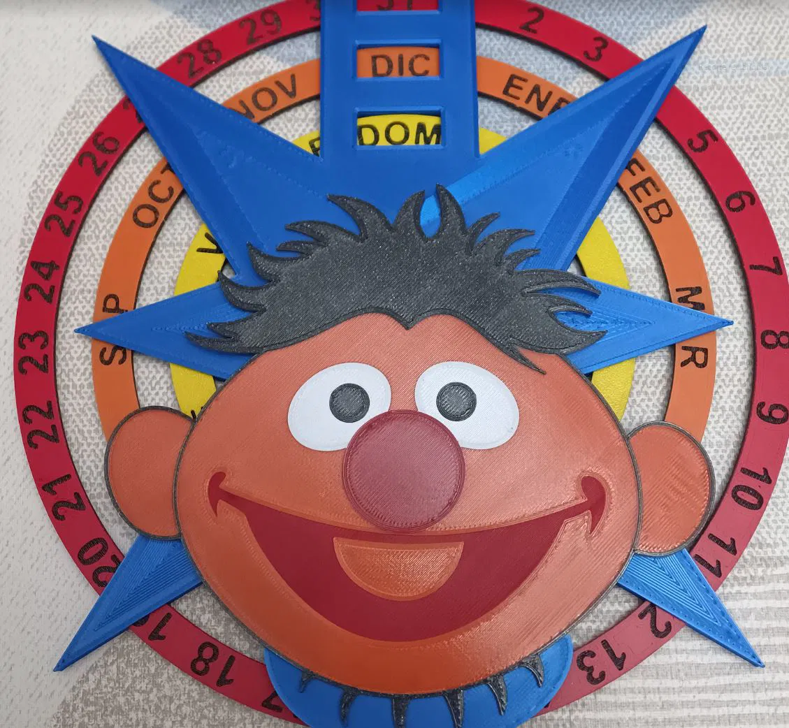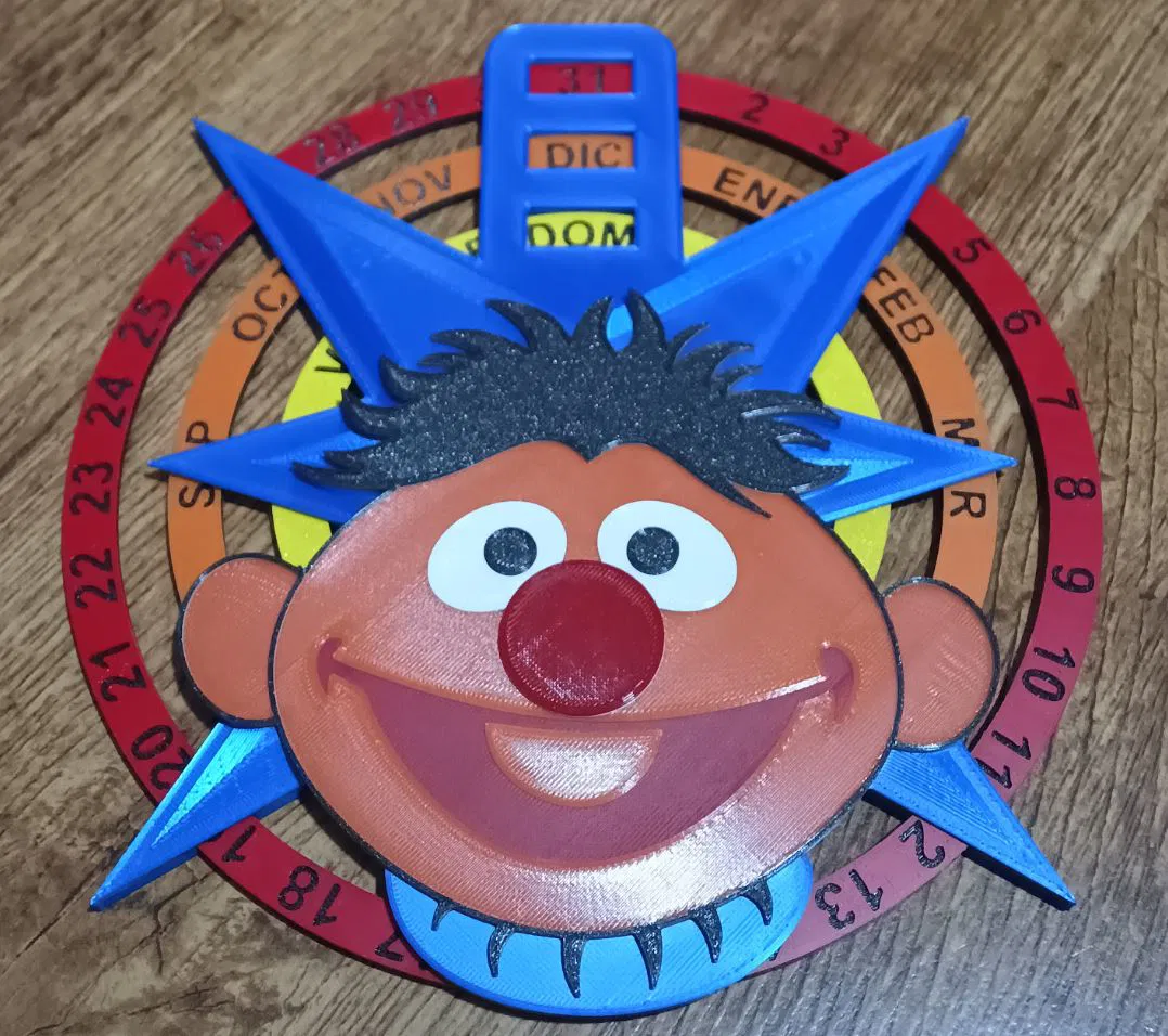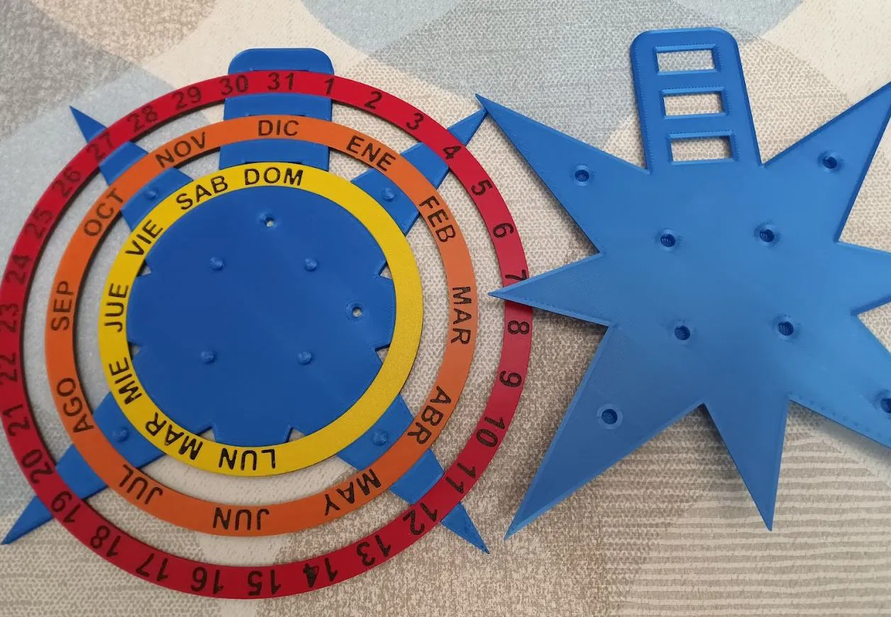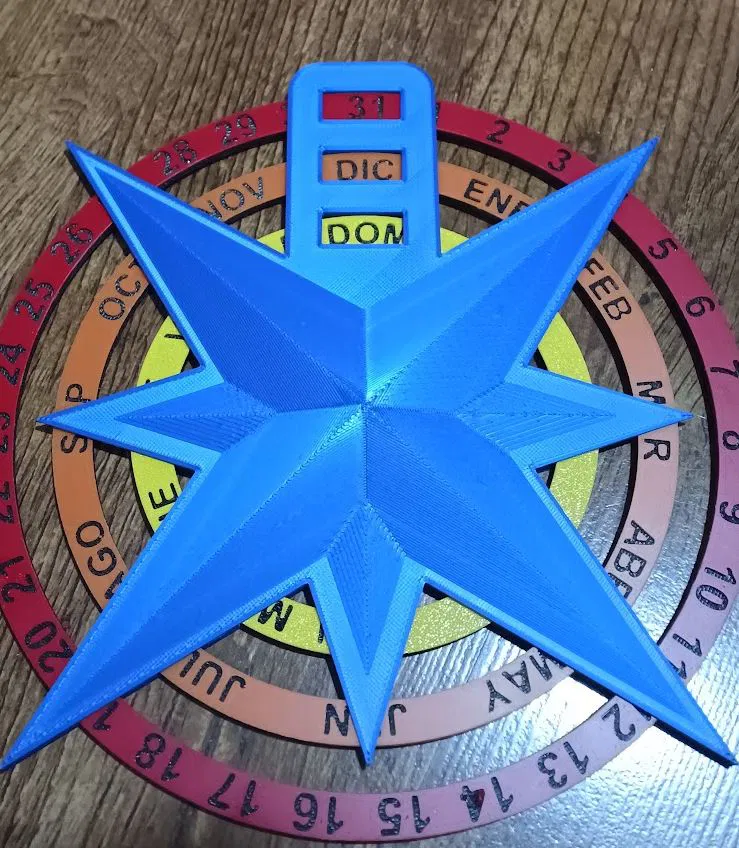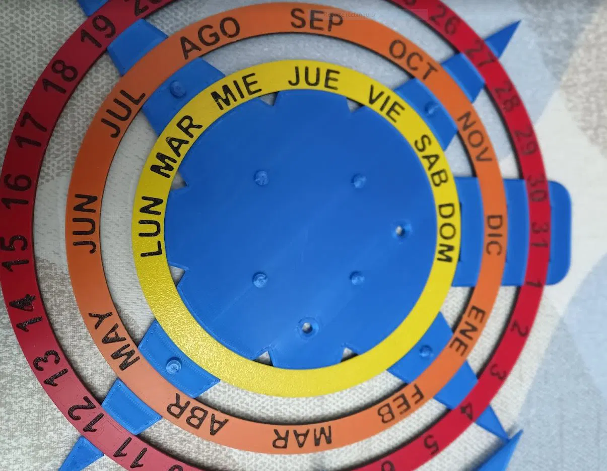 Lịch dạng vòng xoay, xoay quanh Hoa hồng Vạn Niên. @In bằng PLA, dùng cho trong nhà. @Mặt sau có 2 lỗ để treo tường. @Có thể dùng băng dính để treo. @Gồm 3 vòng: ngày trong tháng, ngày trong tuần và tháng. @Xoay trơn tru. Bạn có thể chà nhám nhẹ các cạnh của vòng xoay để loại bỏ bất kỳ gờ nào. Tôi đã tải lên hai mặt trước khác nhau, một mặt có hình Epi và một mặt có hoa hồng vạn niên.. Cả hai đều khớp với cùng một mặt sau và cùng các vòng xoay, vì vậy bạn có thể chọn một trong hai mẫu này... Mặt trước của Epi được in trên máy MK4, với việc thay đổi lớp ở các độ cao khác nhau... ảnh "lớp" cho thấy sự thay đổi màu sắc ở các độ cao khác nhau... lớp in dày 0,2mm