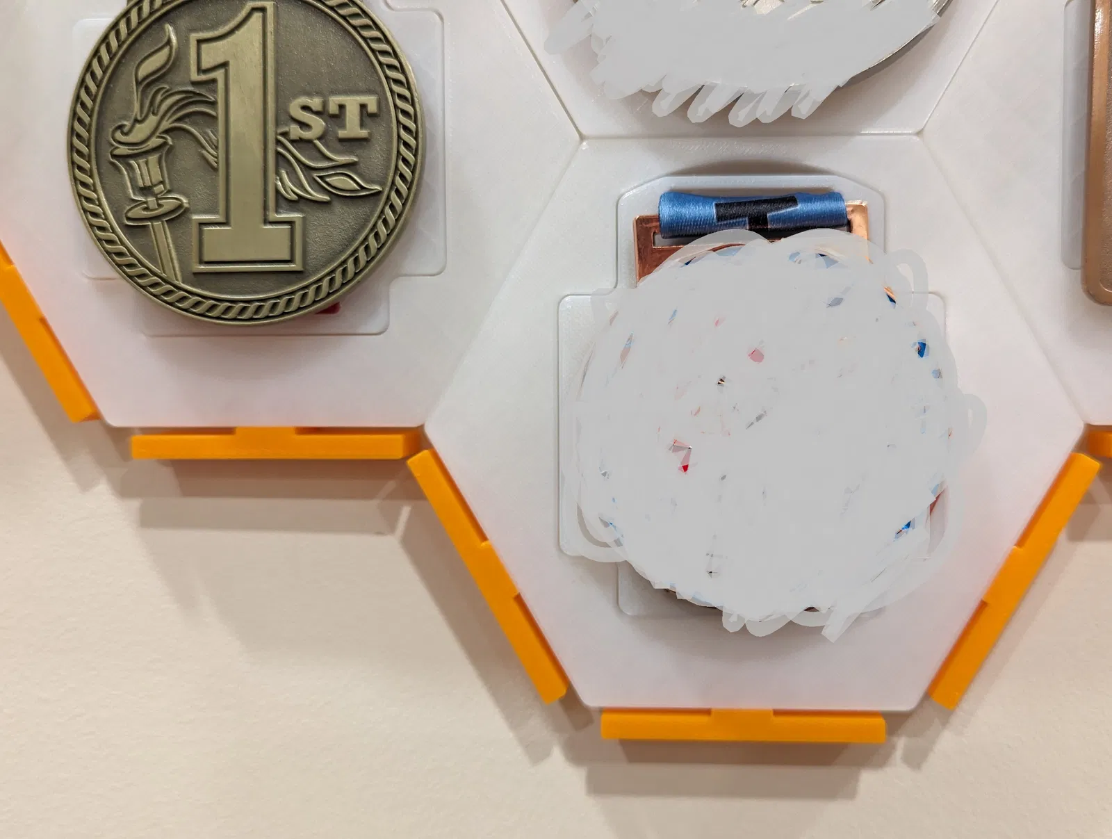 Một chiếc kẹp trang trí đơn giản dành cho đế giữ huy chương hình lục giác. Bạn có thể dễ dàng di chuyển nó đến các vị trí khác nhau trên đế để tô điểm thêm màu sắc theo ý thích.