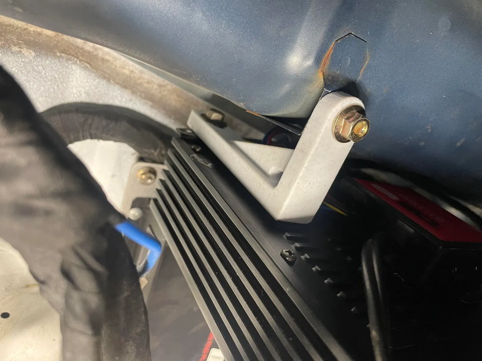 Tui làm cái kẹp này để gắn cái amp của tui lên cái thanh dash trong xe đua của tui. (Cũng gọi là xe đua được đó, có cái radio là hay rồi ha)