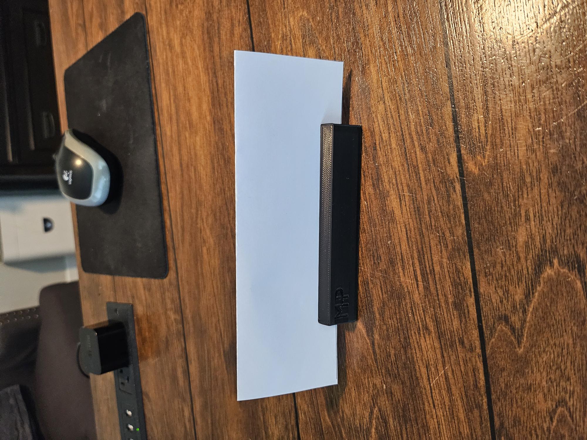 Tui làm cái này để giữ tấm formex dày 1/8 inch, nhưng mà xài giấy gấp đôi cũng ngon lành luôn. Tui có khắc chữ viết tắt của tui lên cái của tui, mà tui up mấy cái bản trống trơn lên đây nè. Có cái hẹp cho bảng nhỏ (sâu 2 inch) và cái sâu cho bảng lớn hơn (sâu 3 inch).