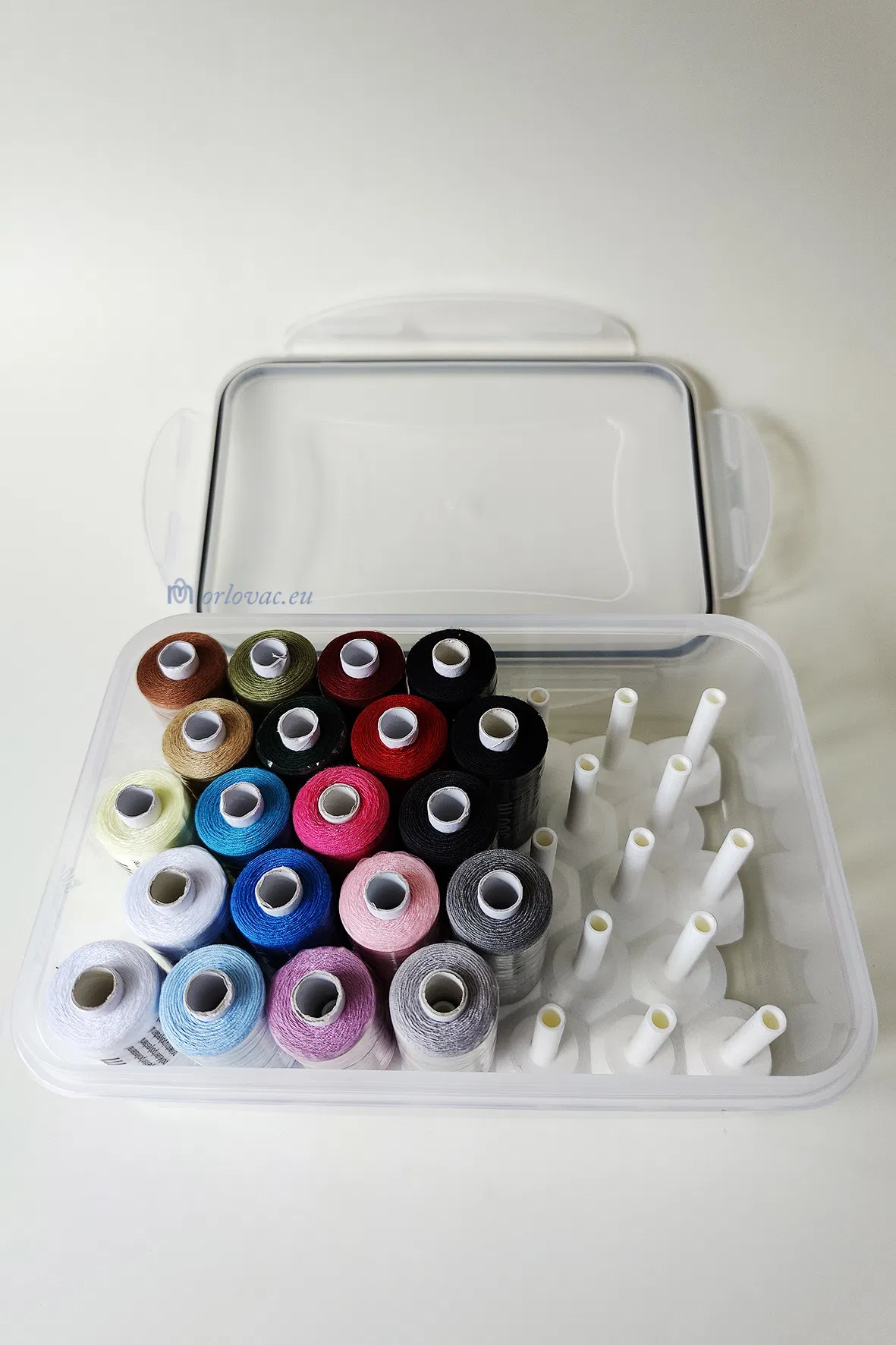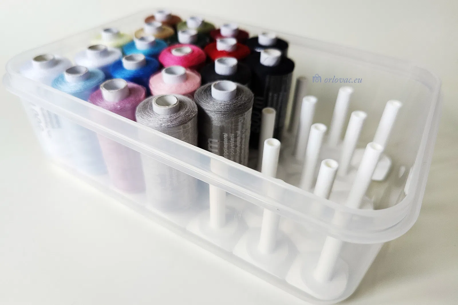 Cần sắp xếp gọn gàng các cuộn chỉ may? Tự thiết kế giá đỡ cuộn chỉ cho hộp nhựa 1.5L để đựng tới 33 cuộn chỉ 500m, giải pháp tối ưu cho các loại chỉ mua ở Lidl, không vừa các hộp có sẵn. Xem chi tiết cách chọn hộp và in ấn.