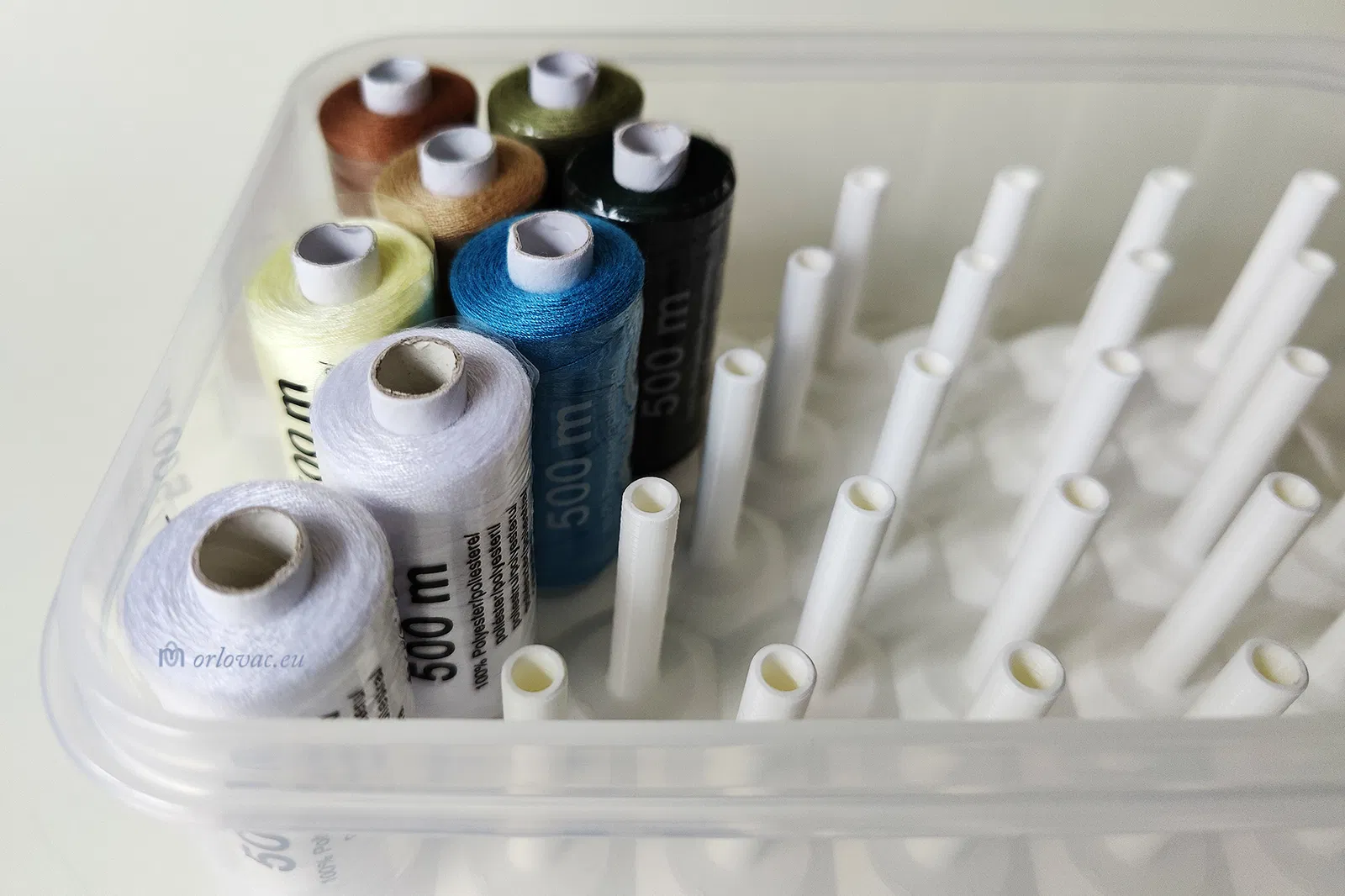 Tôi cần một cái hộp để sắp xếp tất cả các cuộn chỉ may của mình. Vì mấy cuộn chỉ của tôi cỡ 500m, mua ở Lidl, nên mấy cái hộp sắp xếp đồ trên Aliexpress không có cái nào phù hợp. Tôi quyết định tự thiết kế, rồi in ra. Kết quả đây nè. Nó có thể chứa tới 33 cuộn chỉ. Vì tôi rất hài lòng với giải pháp này, nên như mọi khi, tôi sẽ chia sẻ nó với các bạn.
