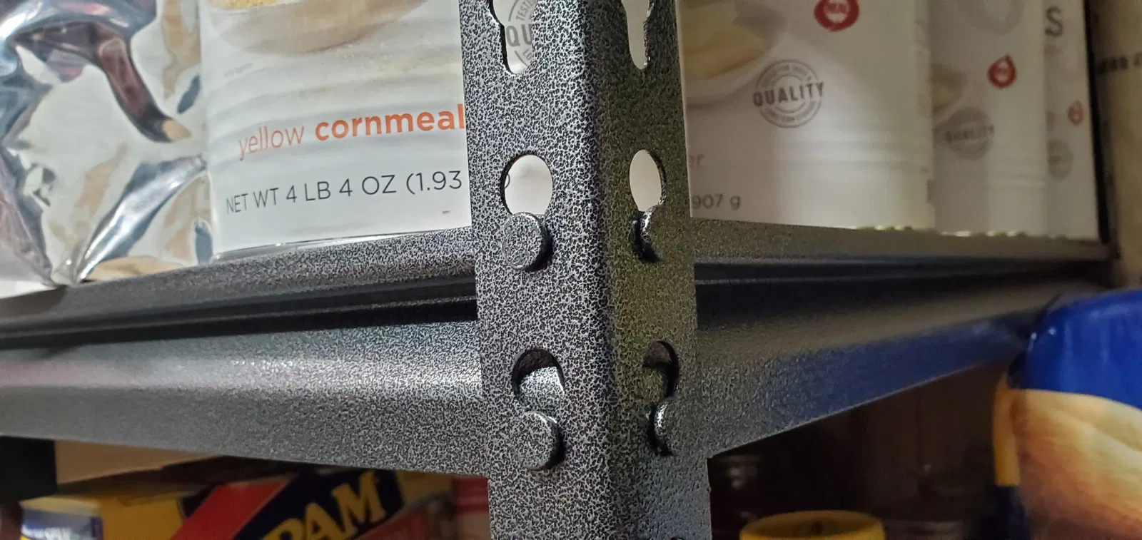 Nhiều hệ thống kệ kim loại mà bạn có thể mua có một miếng ván dăm mỏng, còn được gọi là ván ép, làm kệ. Khi bạn bắt đầu đặt vật nặng lên các kệ này, chúng sẽ bị võng xuống, đặc biệt nếu bạn lắp đặt kệ ở nơi nóng/ẩm ướt như nhà kho, nhà kho, chuồng trại, v.v.