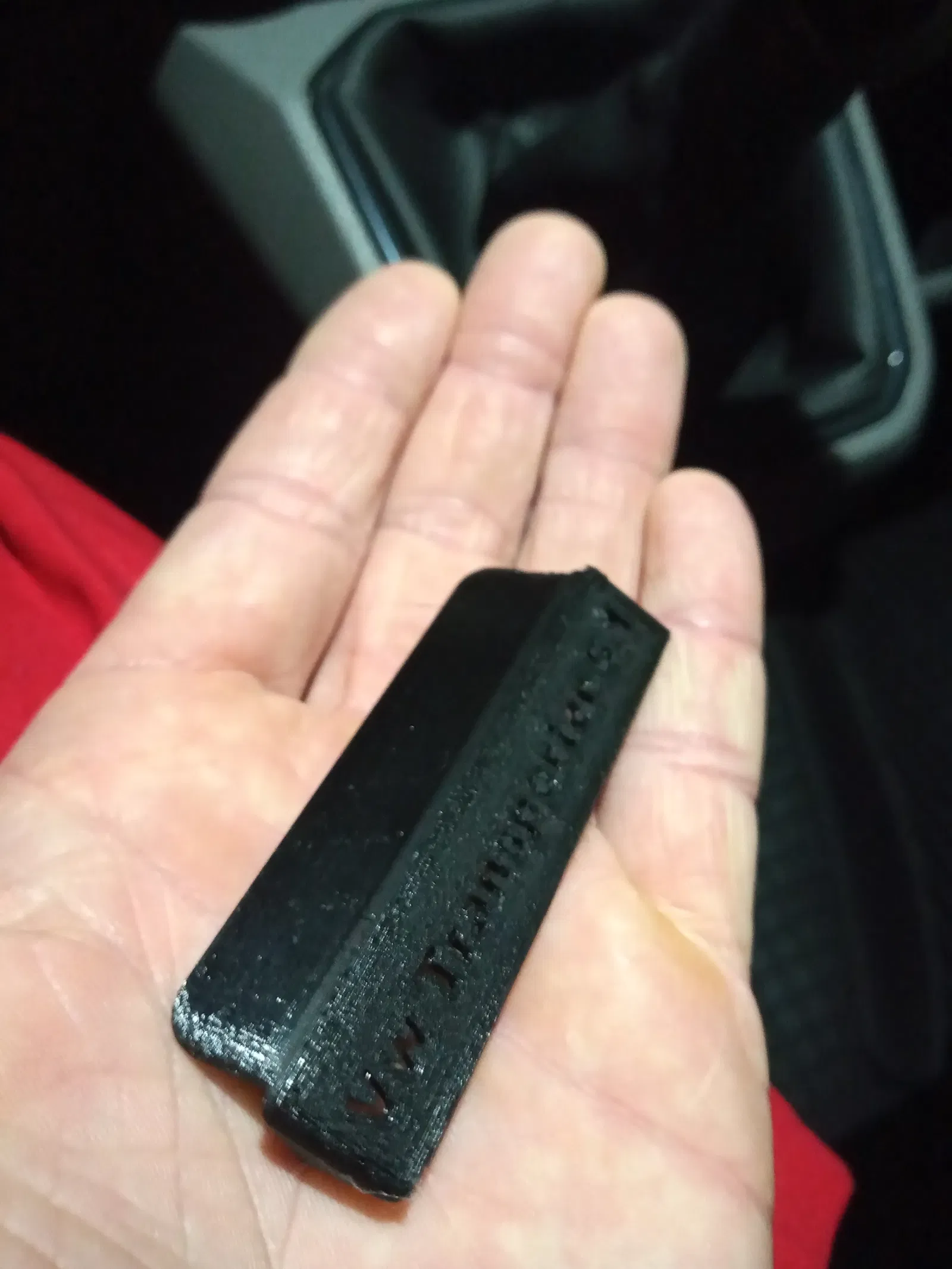 Tụi mình mới nhận được mấy chiếc xe VW T-6.1 mới đi làm, mà trong cabin tài xế có mấy cái đèn báo dây an toàn, nhìn chói mắt quá. Vì là xe công ty nên mình không muốn dán hay chỉnh sửa gì hết, nên mình quyết định mod cái nắp này, lắp vô giữa mấy cái nút bấm là xong.