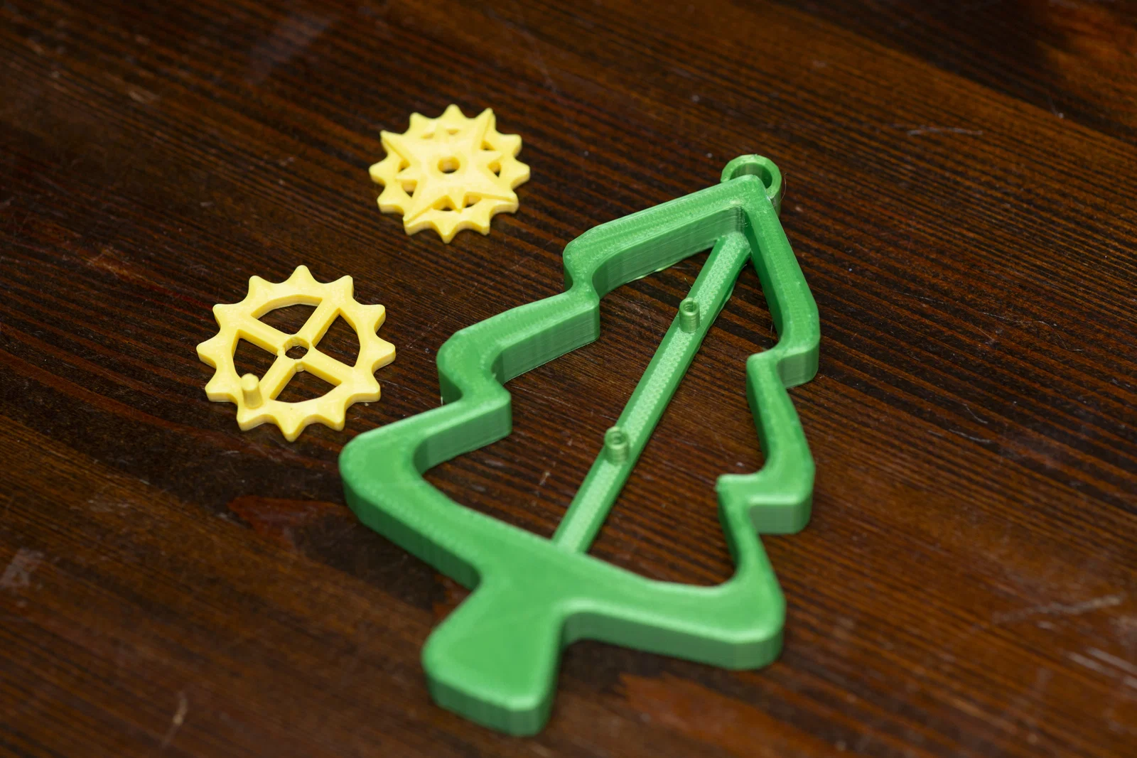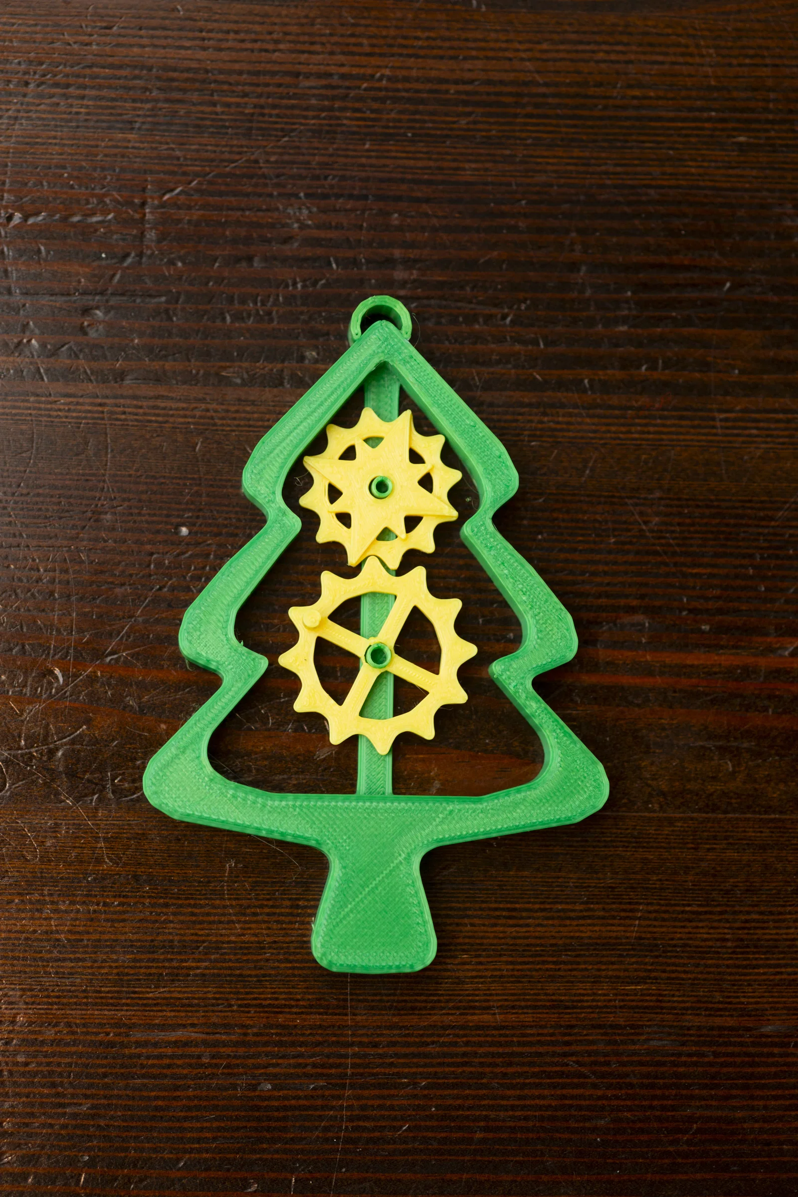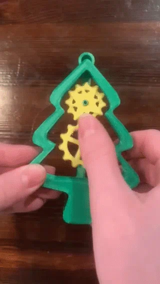 Móc trang trí cây thông Noel Gearmas độc đáo với cơ chế bánh răng giúp ngôi sao phía trên xoay tròn khi bạn tác động. Bạn có thể in lẻ từng bộ phận để phối màu hoặc in tất cả cùng lúc với tệp "AllParts". Phiên bản này đã được cải tiến với trụ trung tâm chắc chắn hơn.