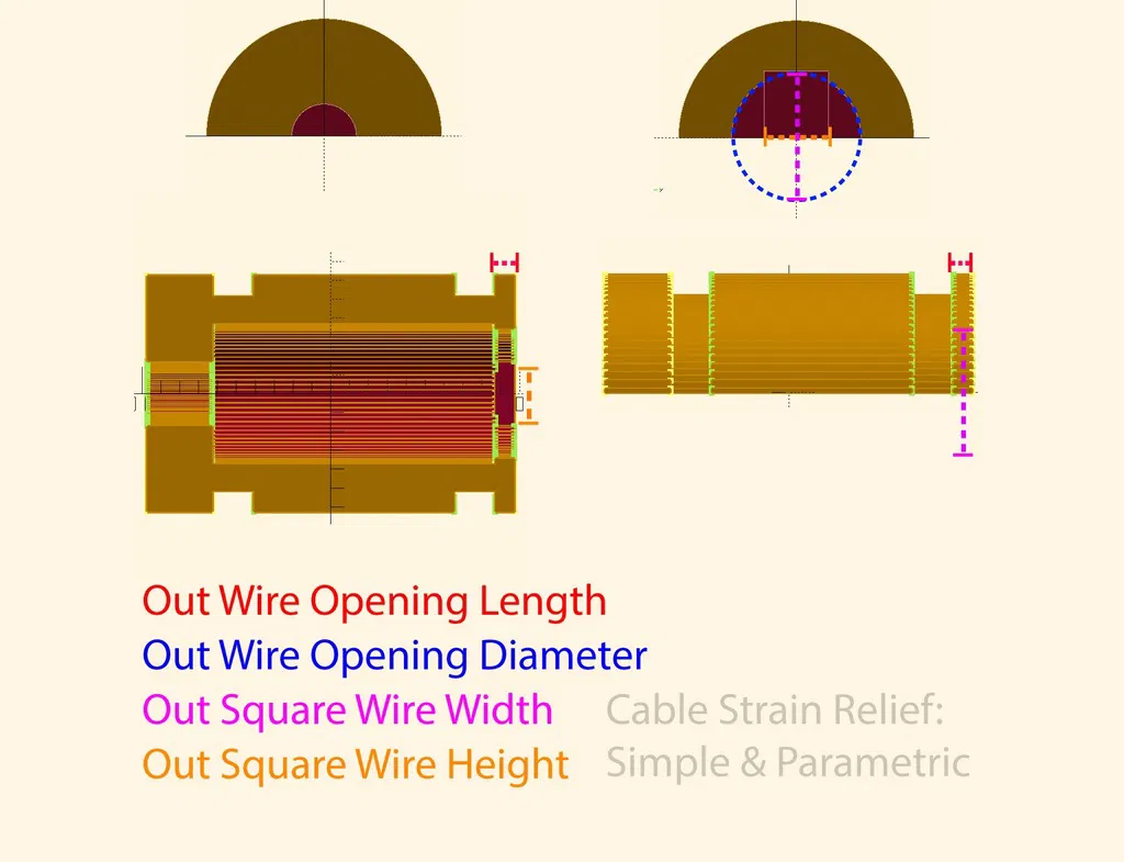 Thiết kế đơn giản này giúp bảo vệ dây điện bị sờn, nối hoặc có nguy cơ bị hỏng. Các tính năng mà nó cung cấp sẽ phụ thuộc vào độ vừa khít và kích thước bạn in các thuộc tính khác nhau.