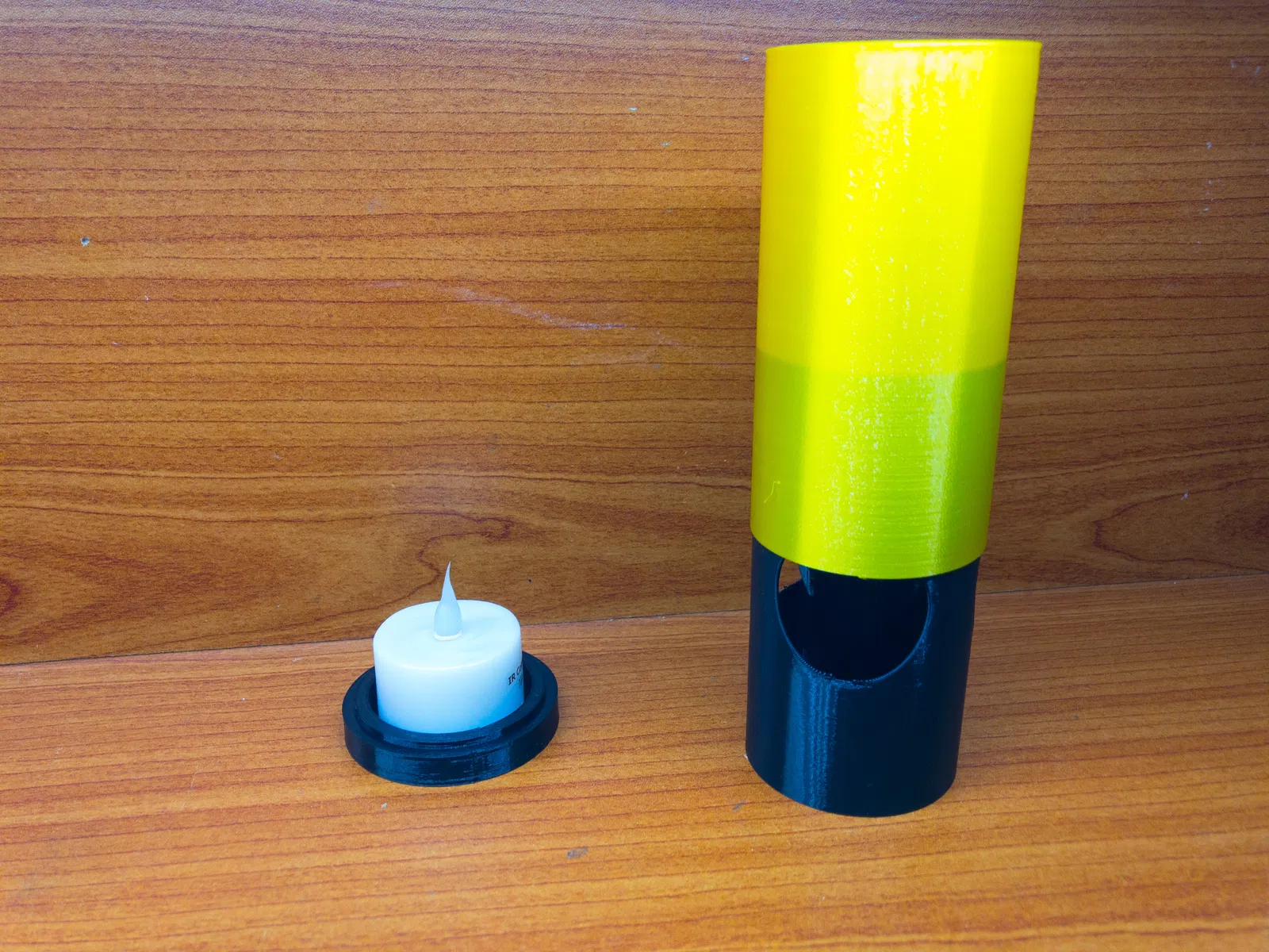 Mình làm cái này dựa trên mấy cái nến điện tử bán trên Aliexpress á. Các bạn có thể dùng bất kỳ nguồn sáng nào hoặc tự chế nguồn sáng nha. Có thể bạn sẽ cần chỉnh lại đế cho vừa với cây nến. Đường kính tối đa khoảng 43mm cho cây nến nha.