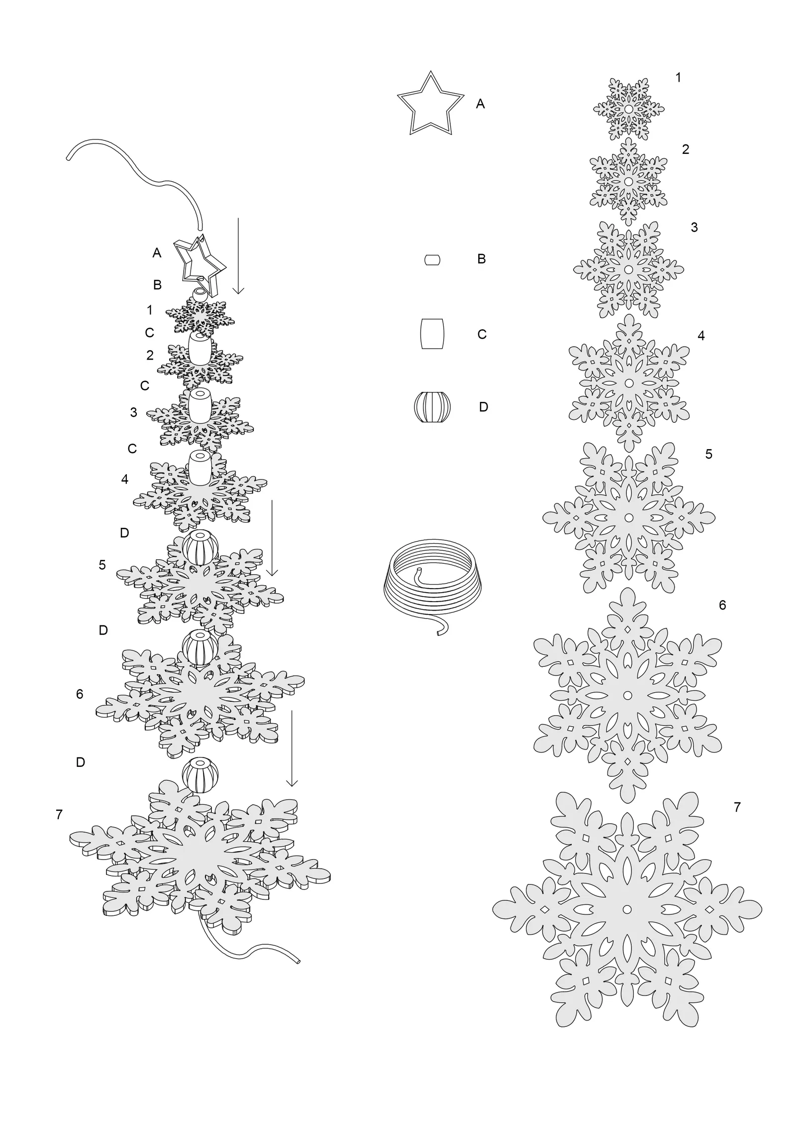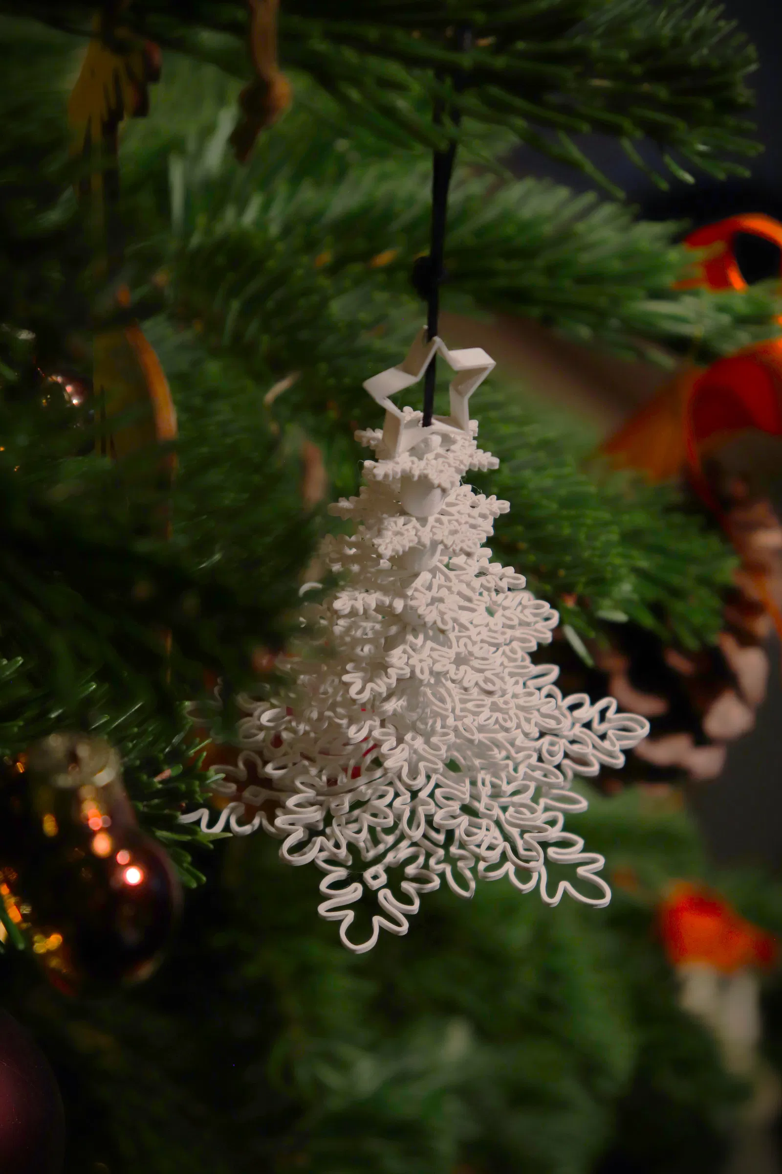 Một cây thông Noel tinh xảo và thanh lịch làm từ những bông tuyết. Có hai phiên bản: một với bông tuyết đặc và một với bông tuyết rỗng, không cần support. Thích hợp để trang trí.