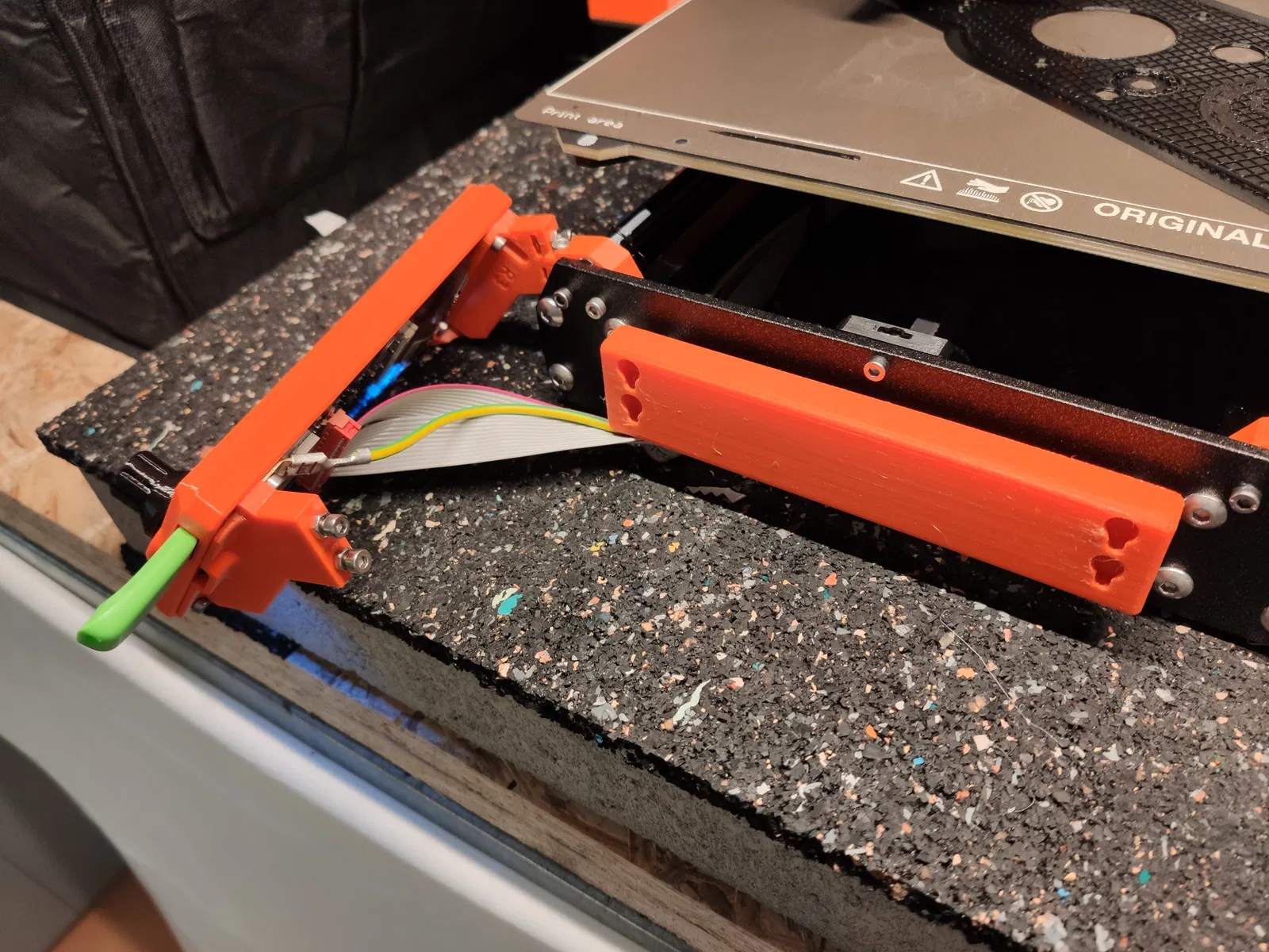 Để tôi có thể thay bạc lót của bàn nhiệt nhanh hơn, tôi chỉ cần tháo bộ phận dẫn hướng con lăn phía trước ra. Như vậy, tôi có thể nhanh chóng tháo bàn nhiệt cùng các thanh trượt ra và tiếp cận mặt dưới của bàn nhiệt.