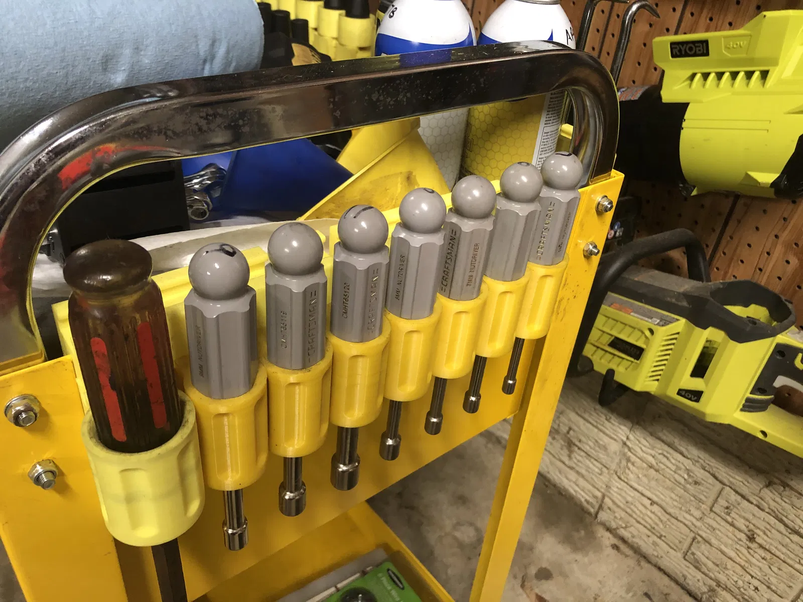 Tui thiết kế hết mấy cái này bằng Solidworks cho mấy bộ của tui, mà đa số là hàng hiệu Harbor Freight. Tui làm loại sâu với loại nông, rồi mấy cái chỗ cắm đầu mũi vít các kiểu nữa để xài chung với cái kẹp bên hông thông dụng. Cái kẹp này thiết kế riêng cho cái xe đẩy đồ nghề nhỏ của Mỹ xài, gắn vô mấy cái cạnh xe là ok.