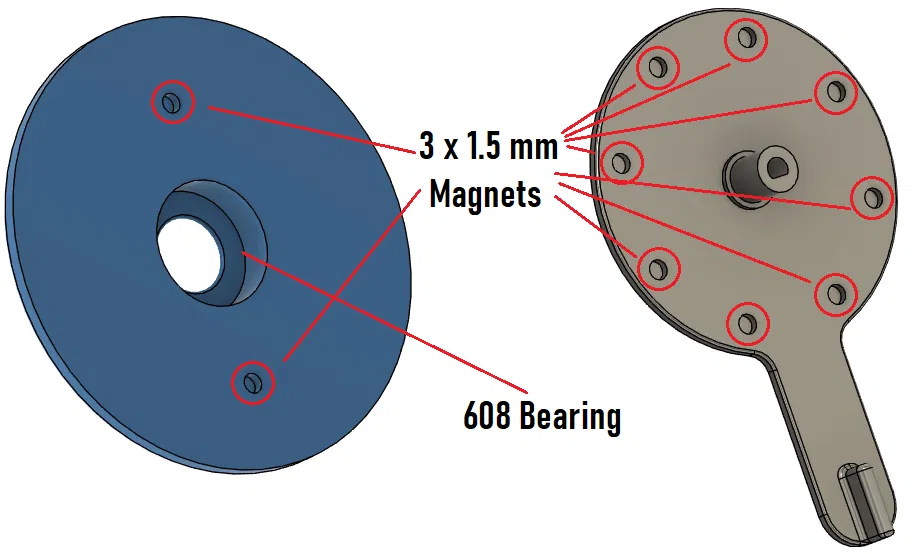 - Gắn tám cục nam châm 3 x 1.5 mm vô mấy cái lỗ tròn trên cái _Wheel of Fortune_Base_ nha.