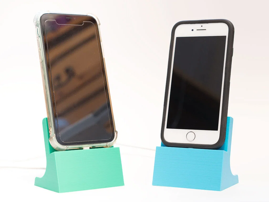 Đây là một đế sạc điện thoại được thiết kế để vừa với cáp Lightning gốc của Apple và điện thoại có ốp dày khoảng 0.010 inch. Không cần in hỗ trợ.