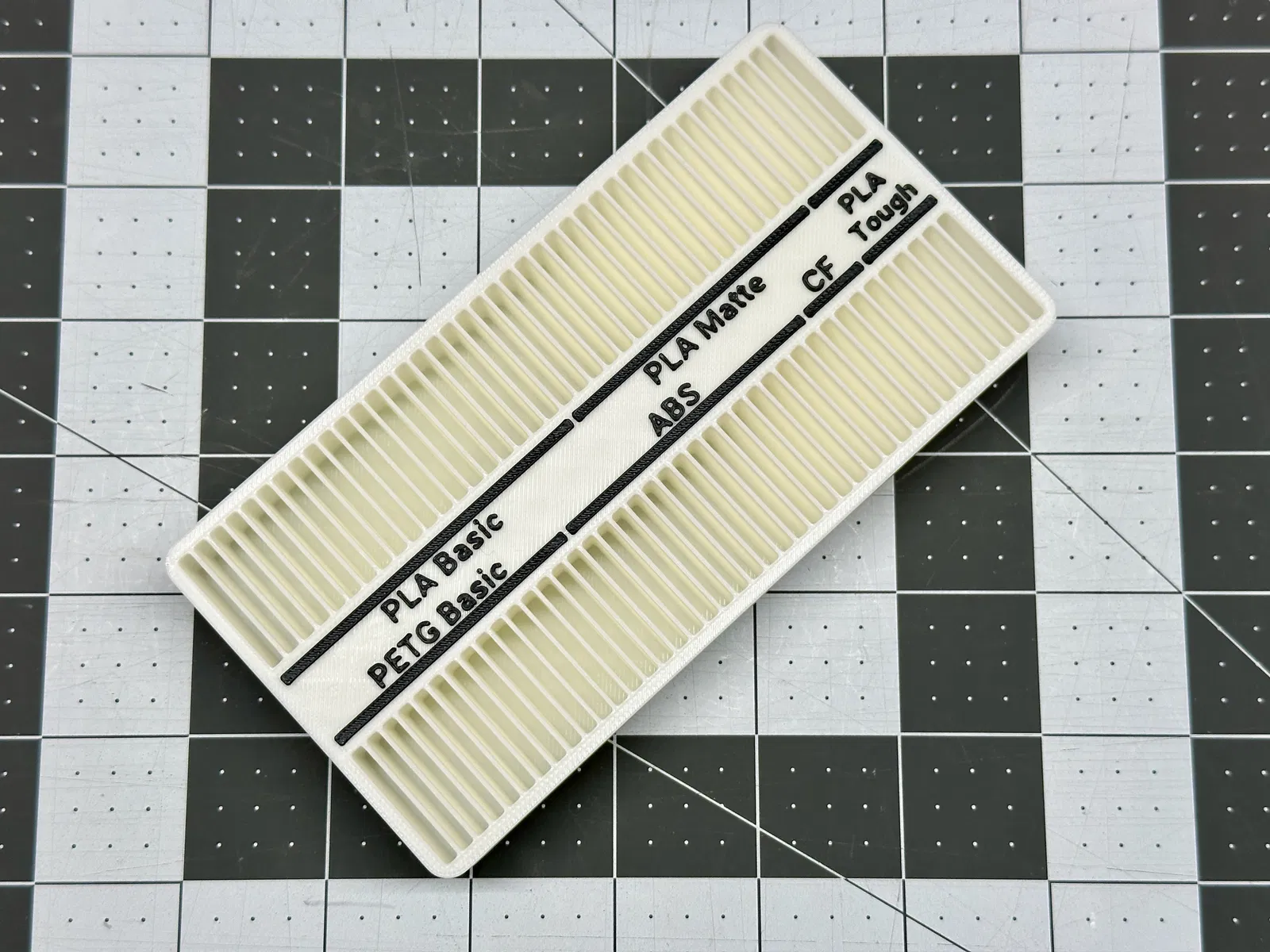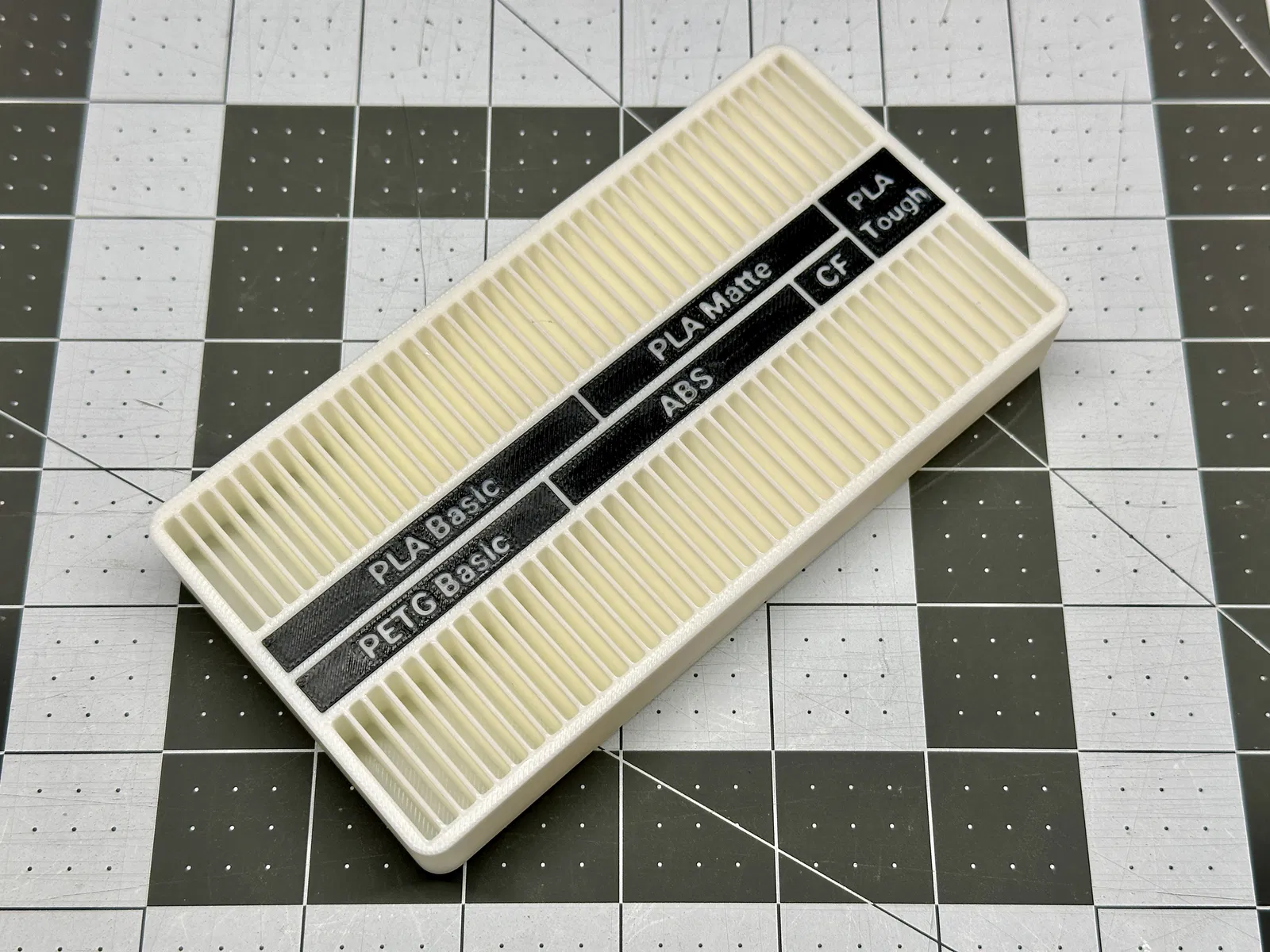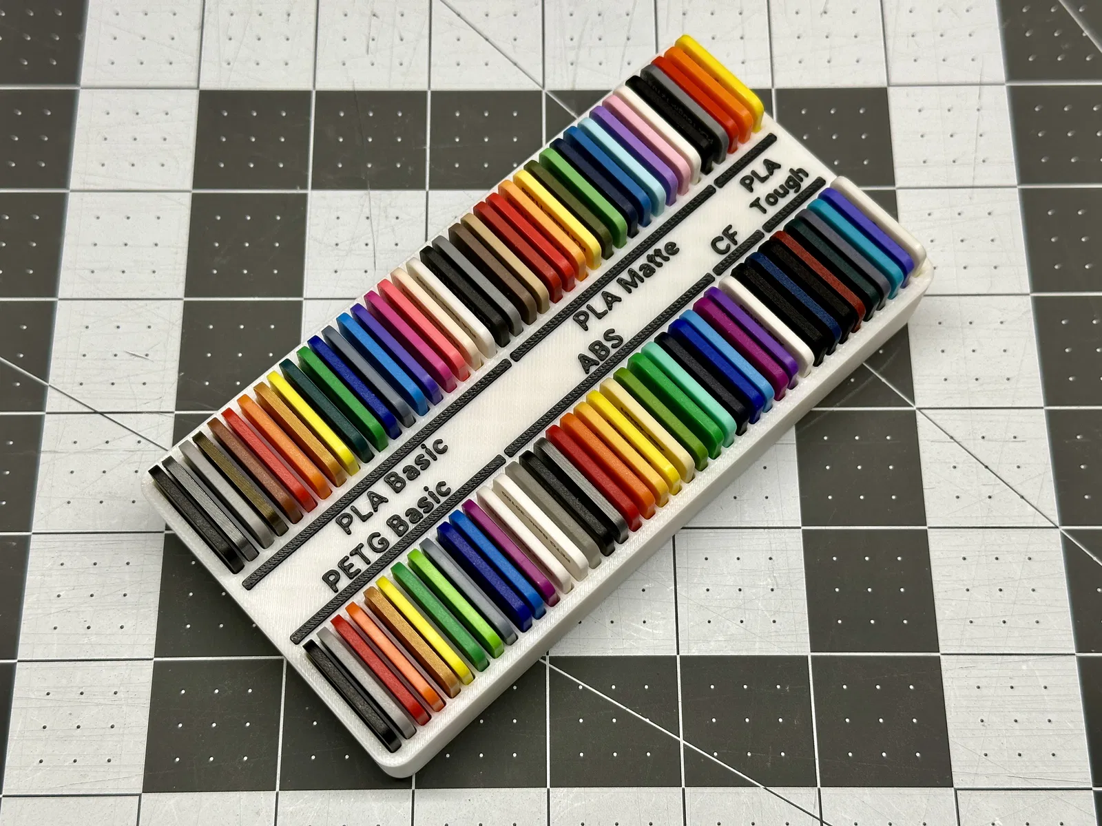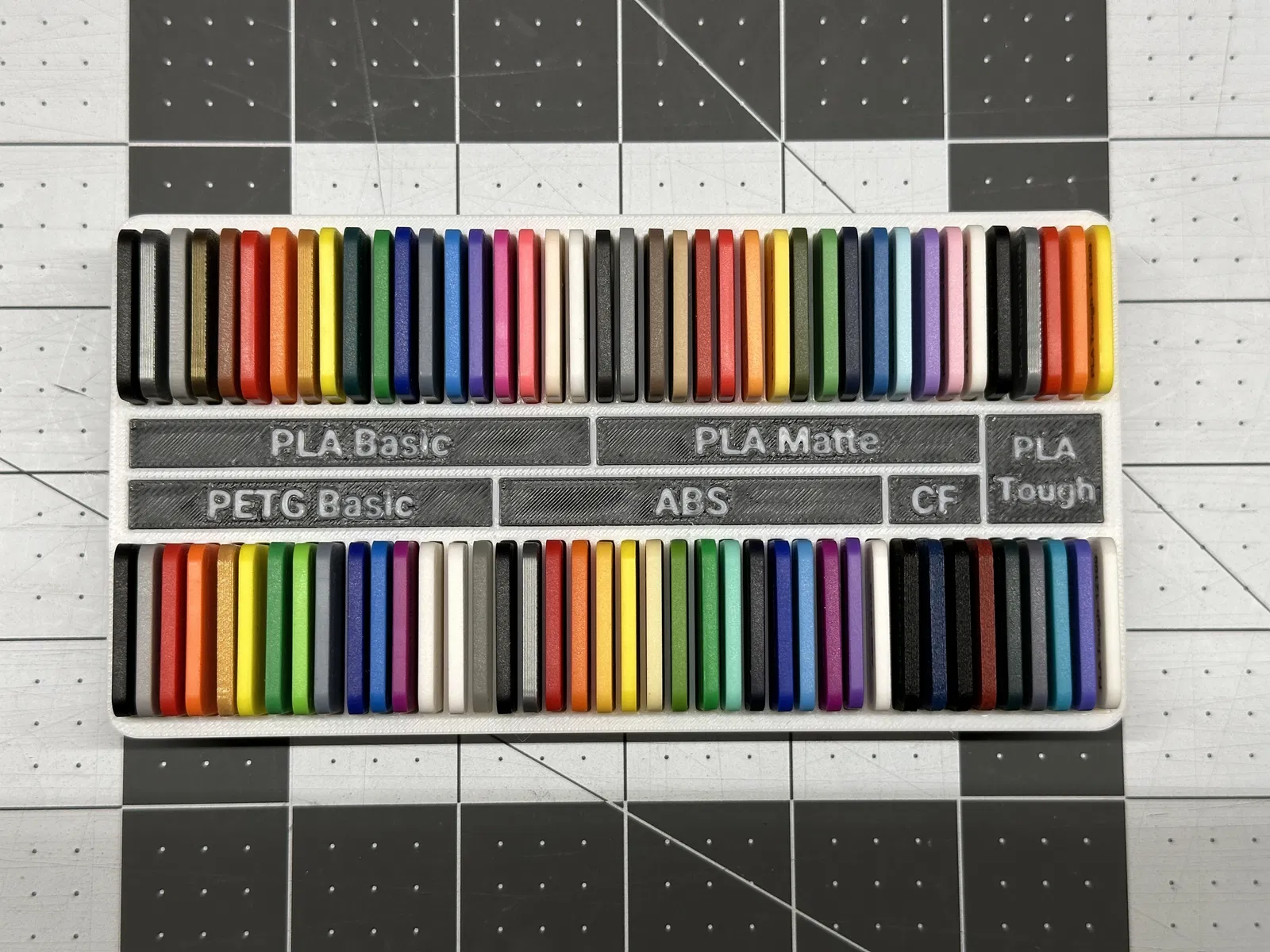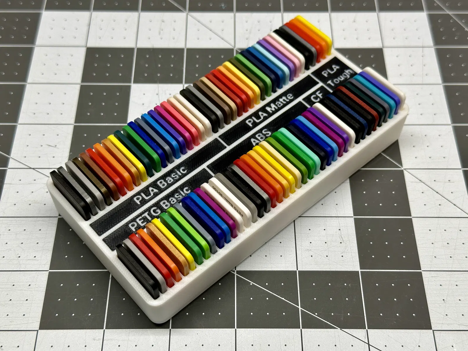 Mình chọn sợi nhựa theo loại trước, rồi mới tới màu sắc. Nên mình muốn làm một cái hộp để chứa các mẫu sợi nhựa của Bambu Lab, sao cho dễ dàng xem được mỗi màu thuộc loại sợi nhựa nào, thay vì sắp xếp tất cả các loại theo màu.