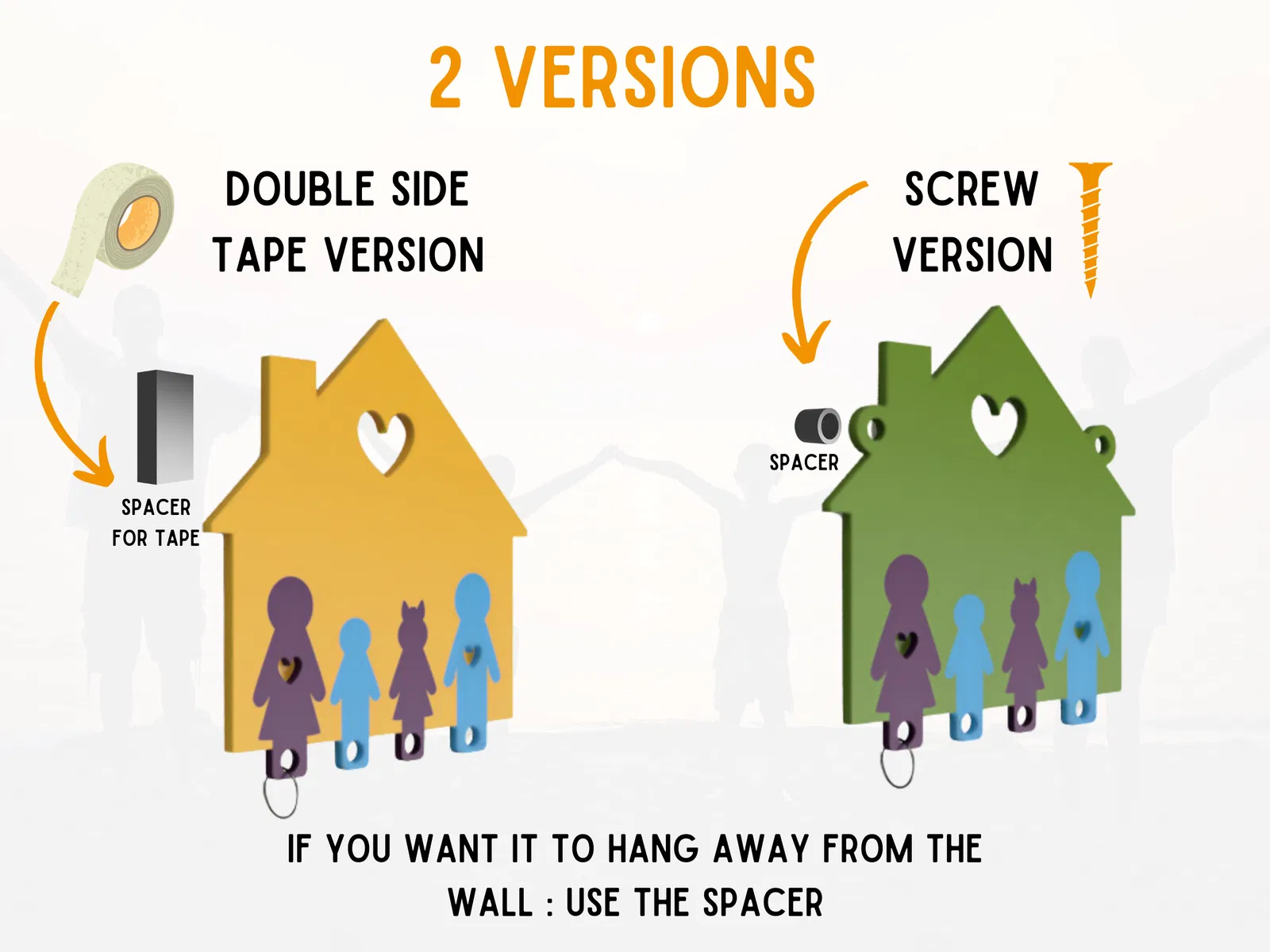 - 🏠 Gắn ngôi nhà móc khóa của bạn lên tường một cách chắc chắn bằng vít hoặc băng dính hai mặt.