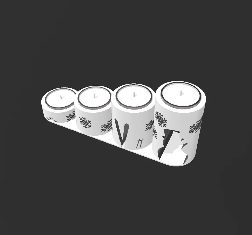 Một ý tưởng độc đáo về chân nến Mùa Vọng để đếm ngược thời gian Mùa Vọng một cách tượng trưng, thời gian chuẩn bị cho Giáng Sinh. Chân nến được trang trí với các lỗ hình bông tuyết, người tuyết và ván trượt có gậy. Kích thước của các lỗ được điều chỉnh để nến tealight vừa vặn đẹp mắt. Chân nến được chia làm 2 phần để việc in ấn tiết kiệm thời gian hơn.