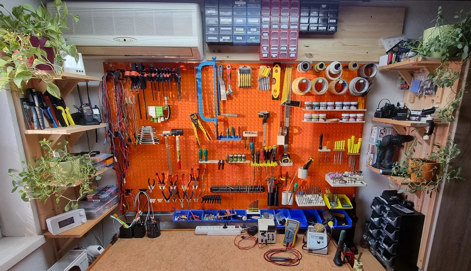 Bộ kệ đựng đồ nghề gắn tường, bao gồm kệ kìm 3 cỡ và kệ tua vít lục giác 6 cái. Giữ cho không gian làm việc của bạn gọn gàng và ngăn nắp. Hoàn hảo cho tổ chức dụng cụ tại nhà hoặc xưởng.
