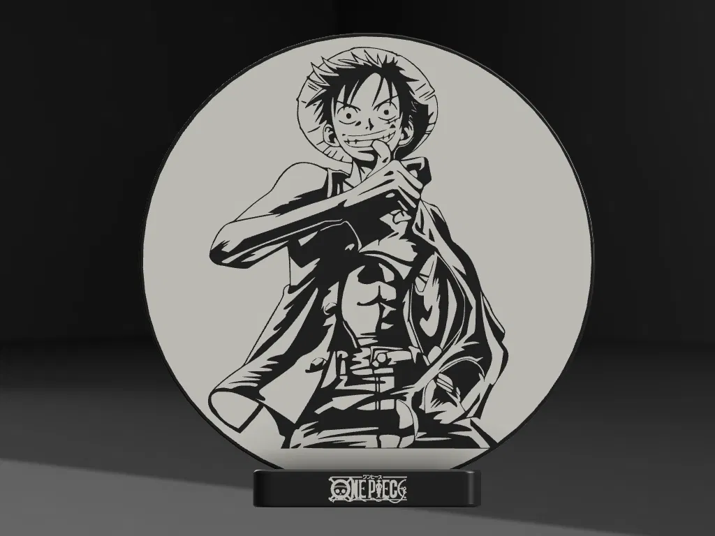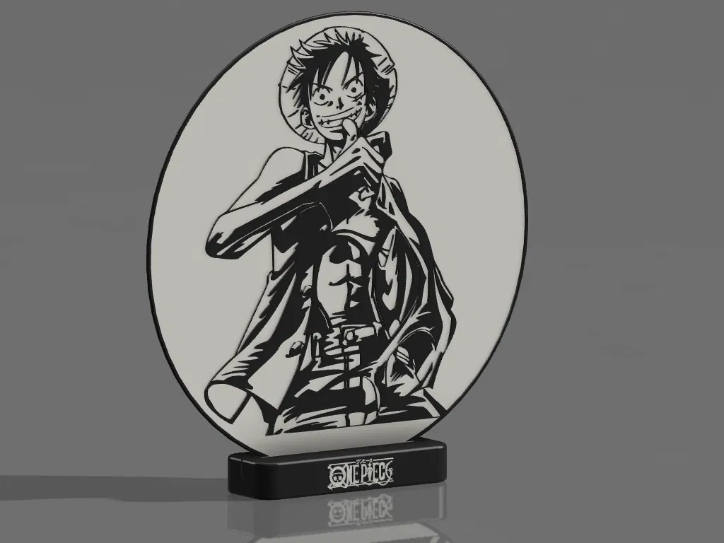 Mô hình Luffy One Piece kèm đế để bàn và logo. Lý tưởng cho fan anime, manga, và One Piece. In với PLA, file STL hỗ trợ nhiều màu sắc cho chi tiết sống động.