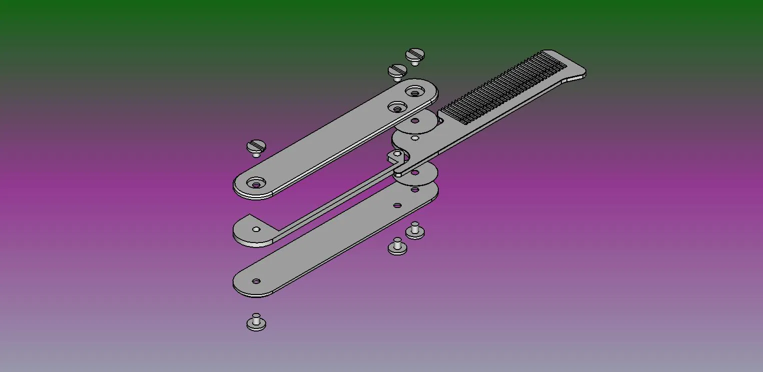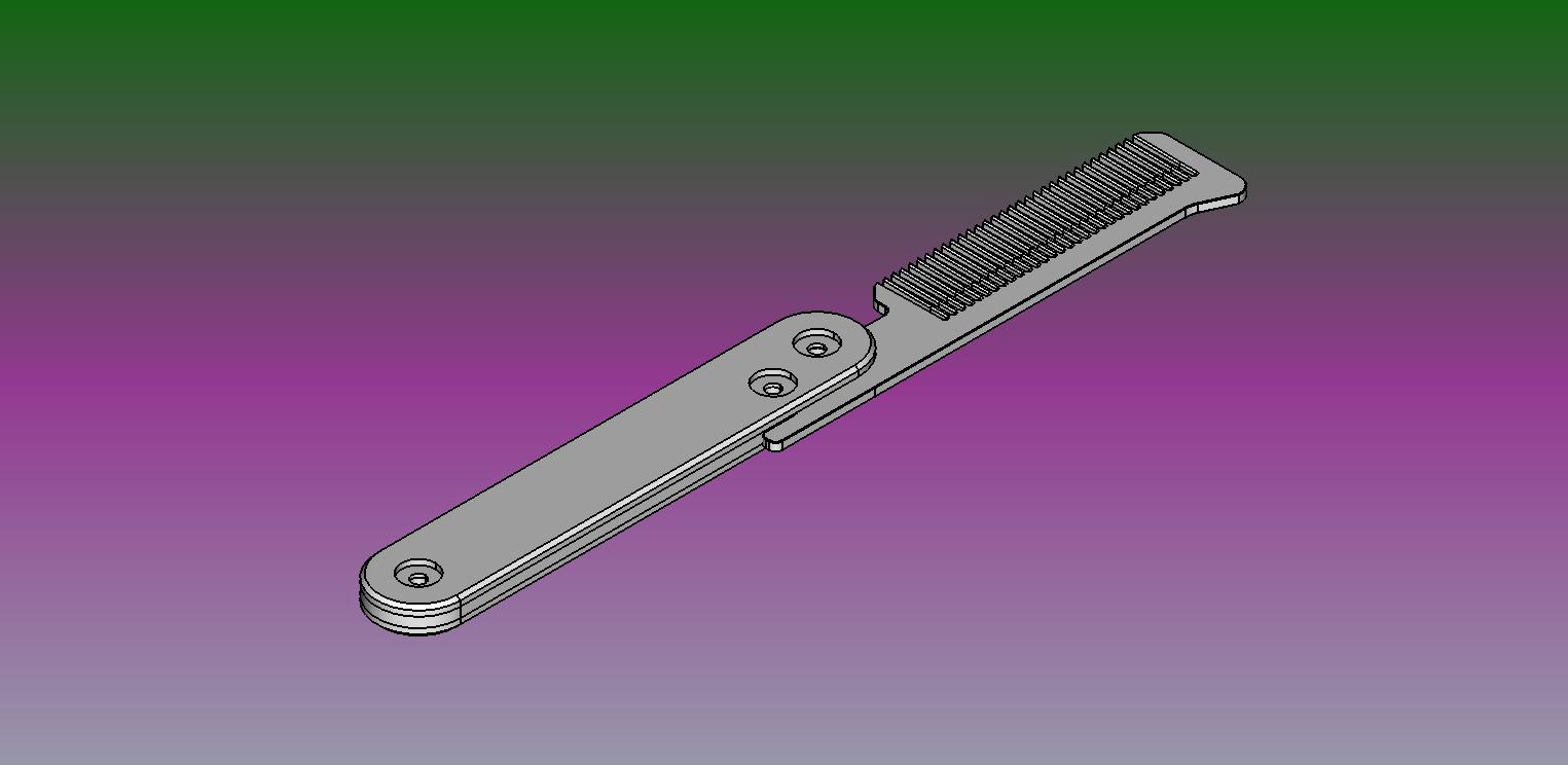 Thiết kế có thể gập lại để chải tóc, lược gập này sử dụng 3 đinh tán Chicago (10mm x 5mm) để giữ mọi thứ lại với nhau. Thoải mái remix lại nha.